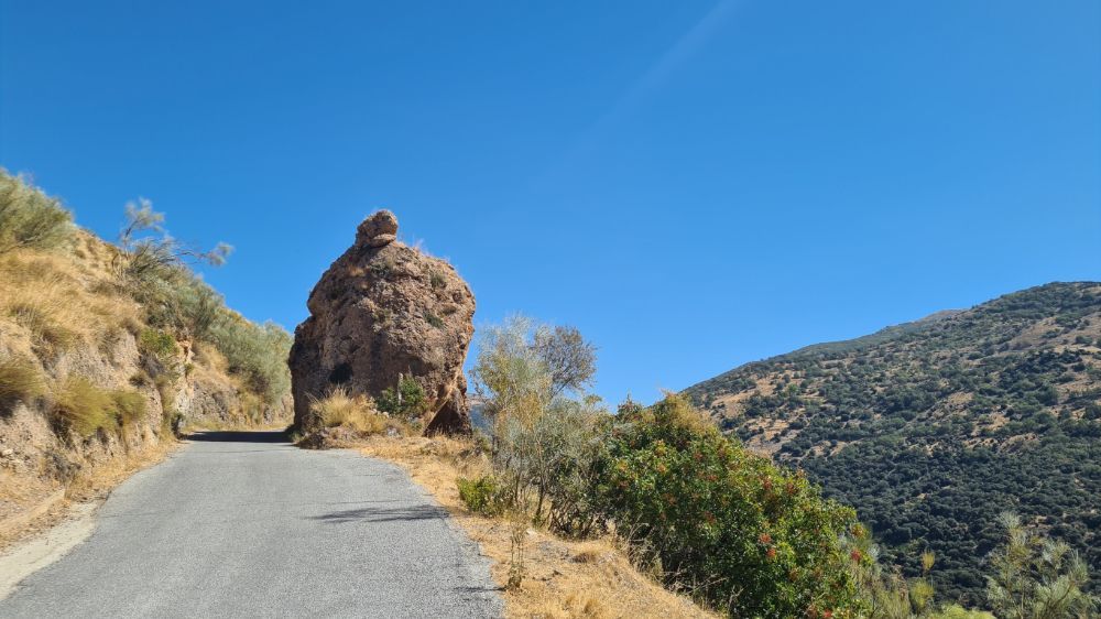 Zufrieden fahren wir weiter. Jetzt aber ab in die Alpujarras. Damit wir die richtige Route erwischen setzten wir im GPS ein Zwischenziel. Nur vergessen wir dann ein neues Zwischenziel zu setzen und sind beide gerade nicht am Wegweiser lesen. Hmm... wie aus dem Nichts kommt der Gedanke -fahren wir richtig? Da stimmt etwas nicht. Verflixt wir hätten in Órgiva abgiegen müssen. Das heisst 7 Kilometer retour.
