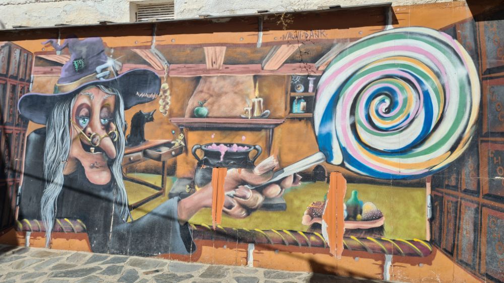 Lange Rede kurzer Sinn - wir finden kein Restaurant. Ein paar Souvenirläden und ein paar Touristen. Das Hexen- und Märchendorf hat ja schon seinen Reiz, aber nicht wenn man Hunger hat. Frustiert geht's zurück zum Womo und schnell basteln wir einen Tomatensalat mit Mozarella.