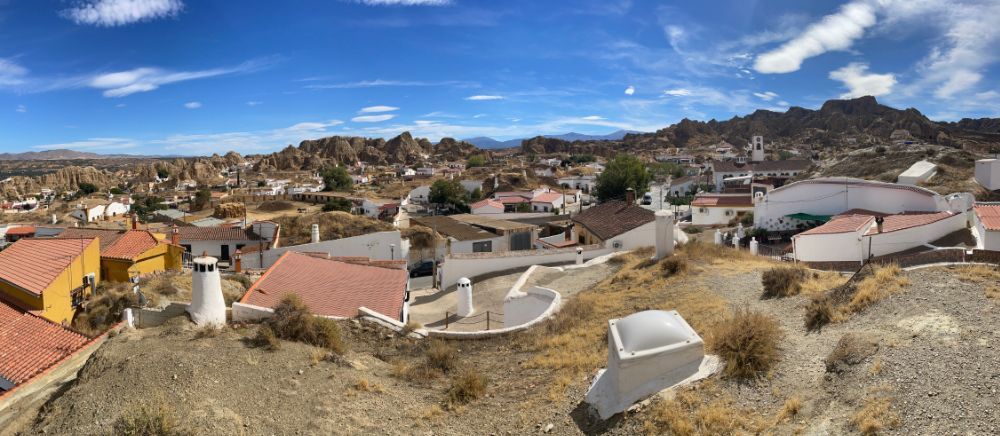 Übernachten wollen wir aber nicht in Guadix. Wir fahren noch 10 Kilometer nach Westen. Im Dorf Marchal gibt es einen der vielen gratis Stellplätze mit V/E und der liegt um einiges schöner als der Parkplatz in Guadix.
