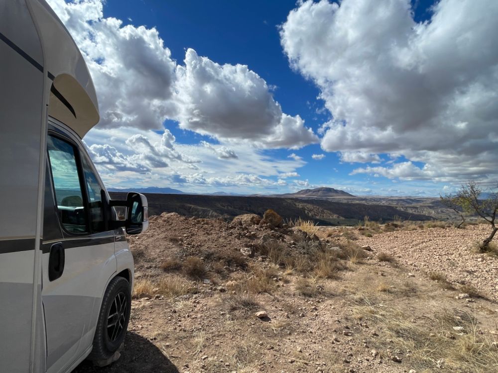 Da wir ja keinen 4x4 haben erkunden wir die Wüste mit unseren E-Bikes. Wir staunen sowieso, dass hier nicht mehr von all den vielen 4x4 unterwegs sind. Da könnten sie endlich mal wirklich offroad fahren und wir begegnen nur drei Fahrzeugen. Bis zum Aussichtspunkt Puntal de Don Diego kann man mit jeglichen Fahrzeugen fahren. Aber ab hier ist für uns Schluss. Wir würden mit unserem Womo schon bei der ersten Steigung scheitern.