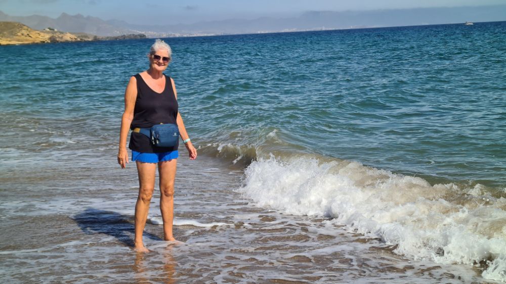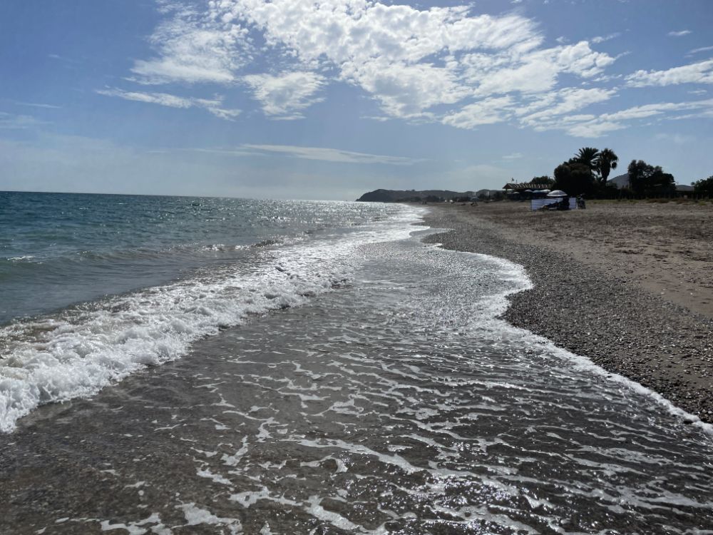 Wir erreichen gegen Mittag nach 42 Tagen oder 6 Wochen das Mittelmeer. Ein Strandspaziergang darf natürlich nicht fehlen. Und die Füsse sind auch schon mal im Wasser. Wir geniessen das schöne Wetter und diesen Urlaubstag. Urlaub vom Reisen - muss auch mal sein.