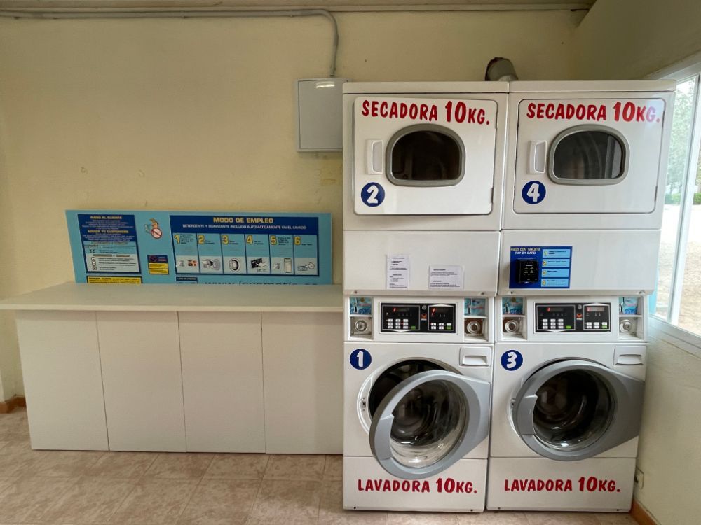 Wenn schon Campingplatz dann schauen wir uns doch mal die Waschmaschinen an. Pingo - Waschmaschine und Trockner je 10 kg und erst noch ziemlich sauber! So starten wir nach fast 4.5 Wochen einen Waschmarathon. (Bis jetzt haben wir nur mit Handwäsche für die nötige frische Wäsche gesorgt) Wir füllen gleich beide Machinen gleichzeitig und bis kurz nach 19.00 Uhr ist alles fix und fertig - wir auch!