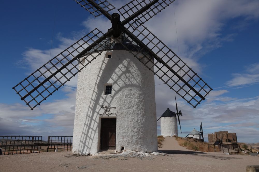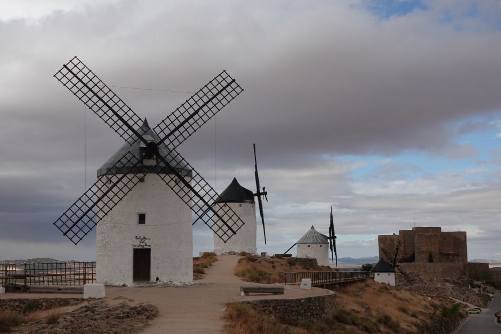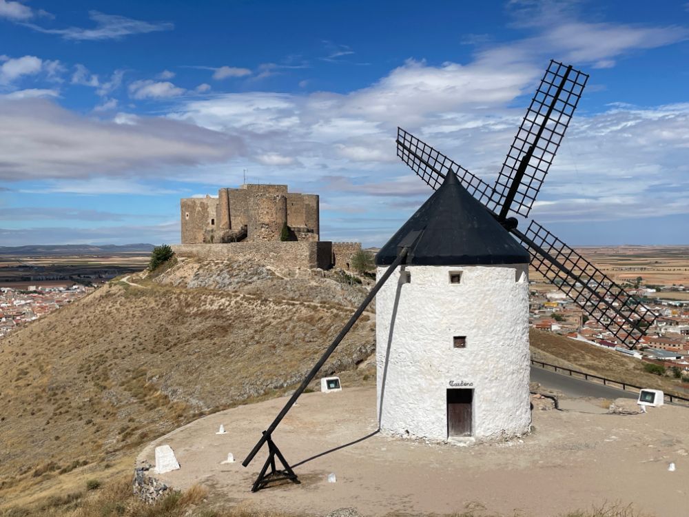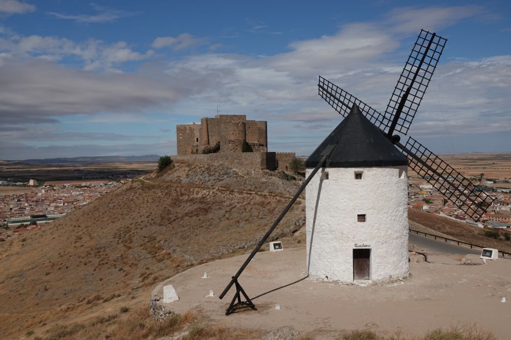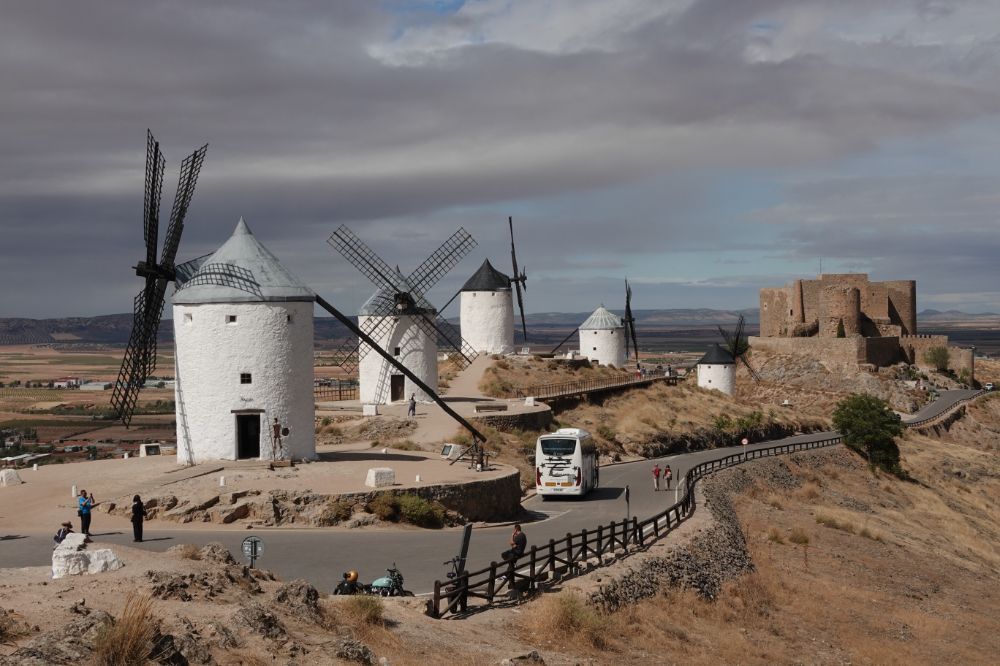Das Castillo de Consuegra und die Molinos de Don Quijote liegen ebenfalls oben auf einem Hügel. Mit heftigem Gegenwind "erklimmen" wir auch diesen "Berg" ! Hier treffen wir dann aber doch auf Touristen. Auch Reisecars kurven nach oben und spuken eine Ladung Menschen aus allen Herren Länder aus. Am späteren Nachmittag nimmt der Besucherstrom stetig zu und auch die Wolken werden kurzzeitig etwas dichter. Wir haben also richtig entschieden mitten am Nachmittag hochzuwandern.