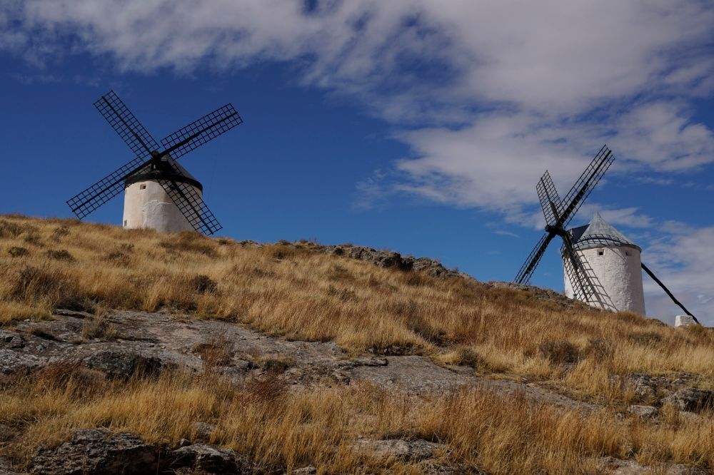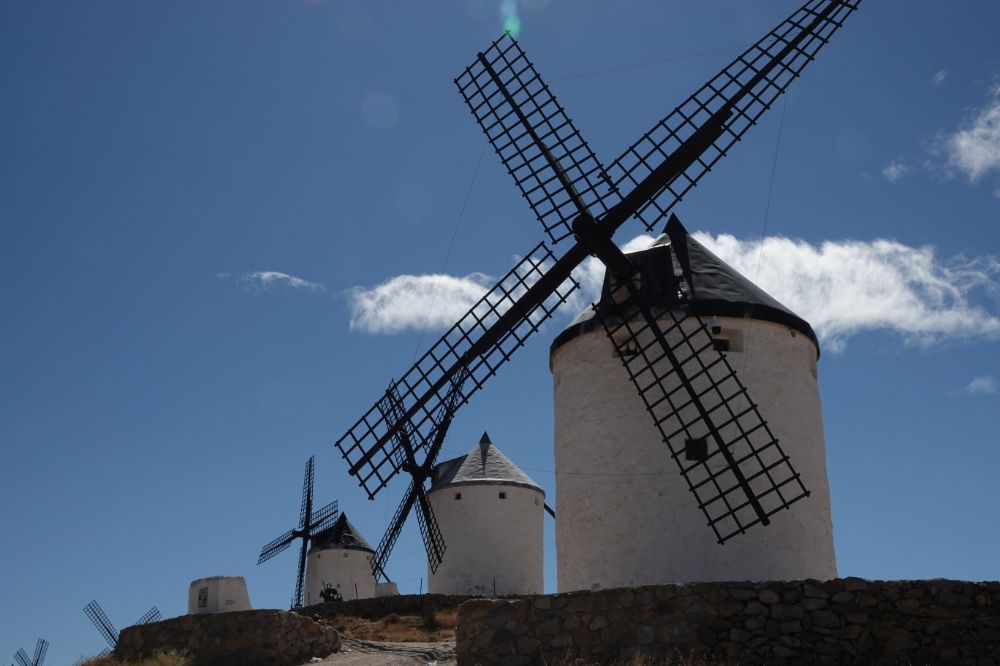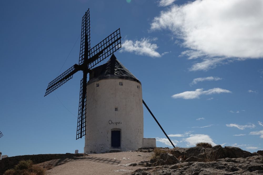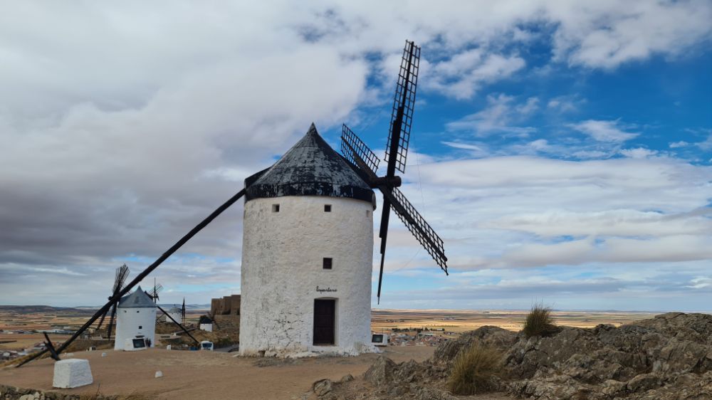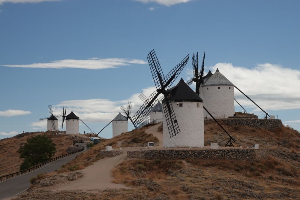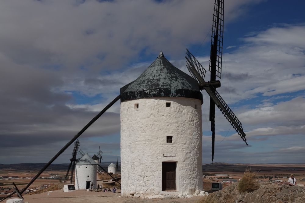 Das Castillo de Consuegra und die Molinos de Don Quijote liegen ebenfalls oben auf einem Hügel. Mit heftigem Gegenwind "erklimmen" wir auch diesen "Berg" ! Hier treffen wir dann aber doch auf Touristen. Auch Reisecars kurven nach oben und spuken eine Ladung Menschen aus allen Herren Länder aus. Am späteren Nachmittag nimmt der Besucherstrom stetig zu und auch die Wolken werden kurzzeitig etwas dichter. Wir haben also richtig entschieden mitten am Nachmittag hochzuwandern.