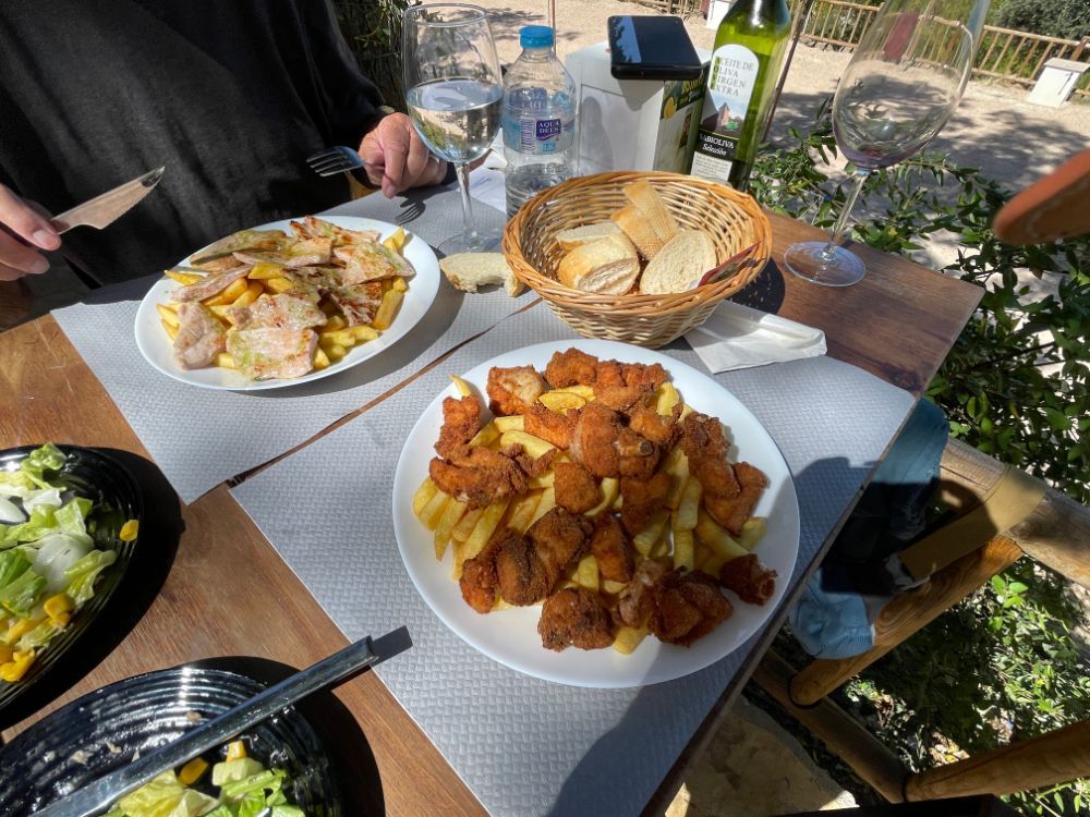 Und dann überrascht uns unser spanischer Nachbar mit einem Teller Paella. Sie schmeckt wunderbar. Aber wir heben uns das meiste für das Nachtessen auf, wir sind ja schon satt.