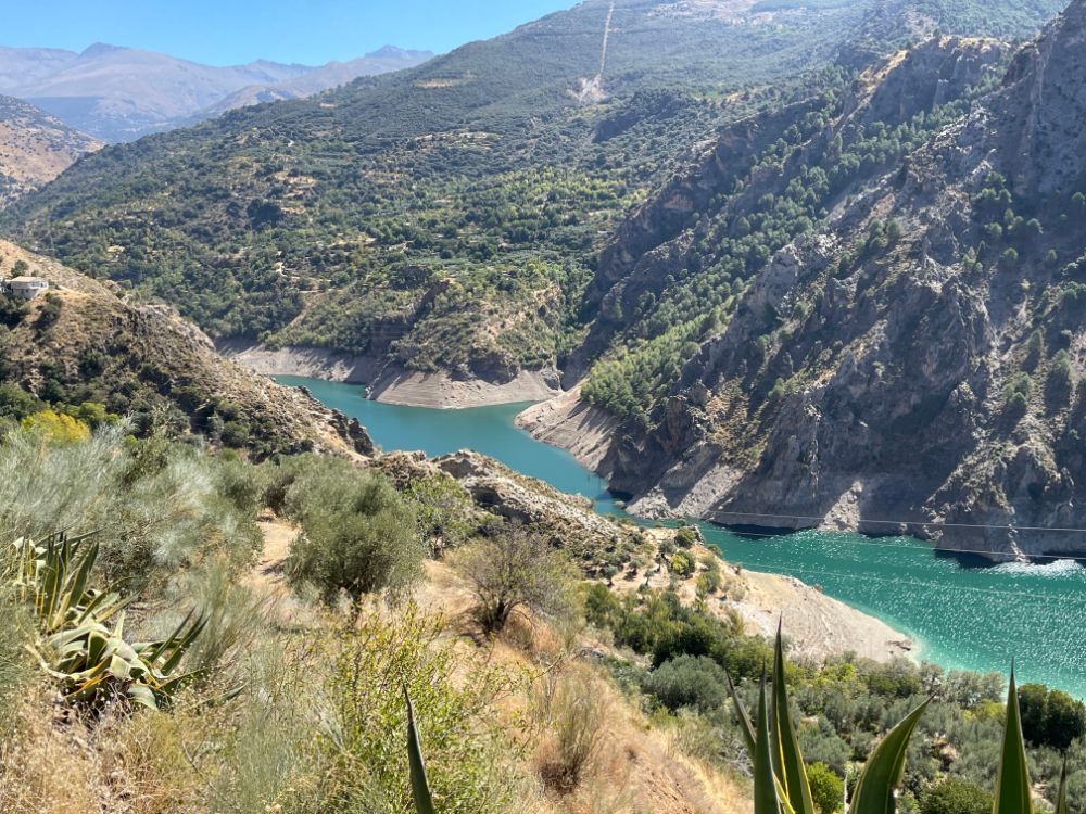 Auch heute haben wir bereits bei der Abfahrt ein klares Tagesziel - Camping las Lomas in Güéjar Sierra nahe bei Granada. Wir beziehen einen Platz hoch über dem Embalse de Canales mit schöner Aussicht auf die Umgebung. Der Campingplatz hat auch ein Restaurant. Eigentlich wäre es die ideale Zeit für ein Mittagessen. Das Restaurant ist nicht nur bei den Campinggästen beliebt oder wohl besser gesagt, sehr beliebt bei den Einheimischen. Und da ist an einem Sonntag um 14.00 Uhr gar nichts mehr zu machen. Voll ist voll!!