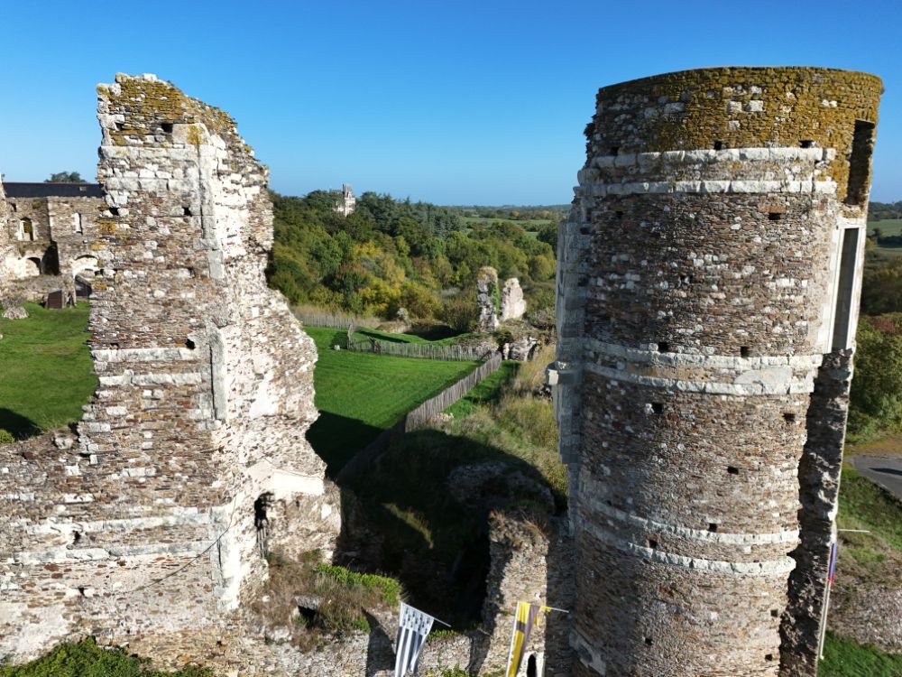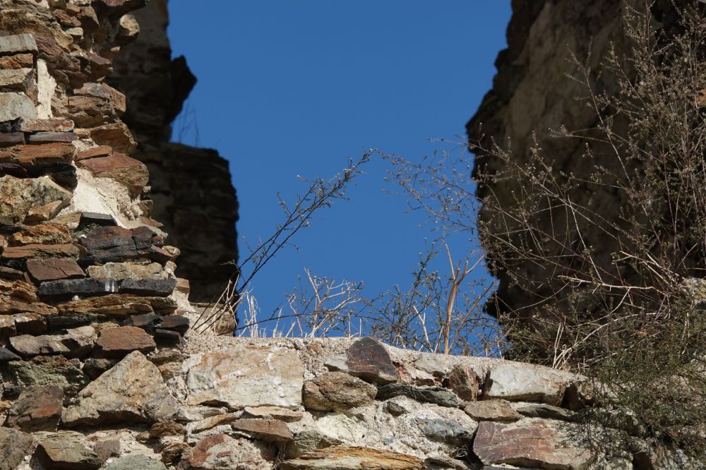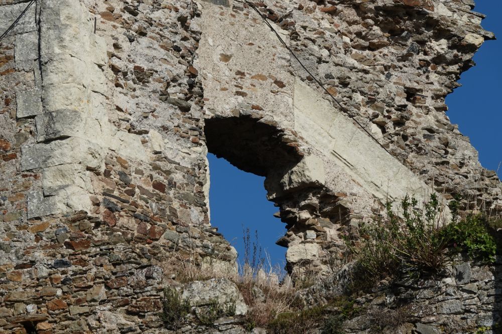 Es ist nur noch eine Ruine und enttäuscht müssen wir feststellen, dass das Betreten mittlerweile verboten ist. Hansruedi lässt die Drohne steigen, was den Vögeln aber gar nicht gefällt und sie greifen das komische Flugobjekt dauernd an. Ich, Heidi, bin mit dem Fotoapparat unterwegs, aber man kann die Ruine nicht mal ganz umrunden. Ok, schön war's trotzdem.