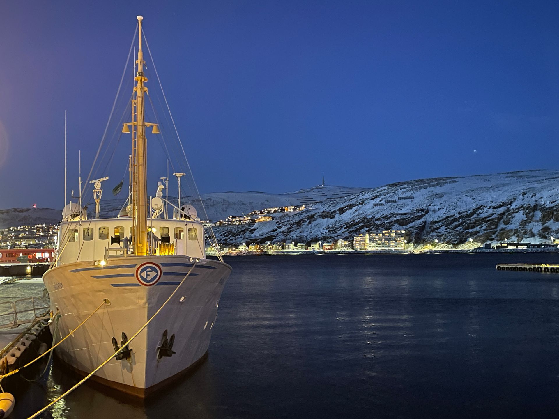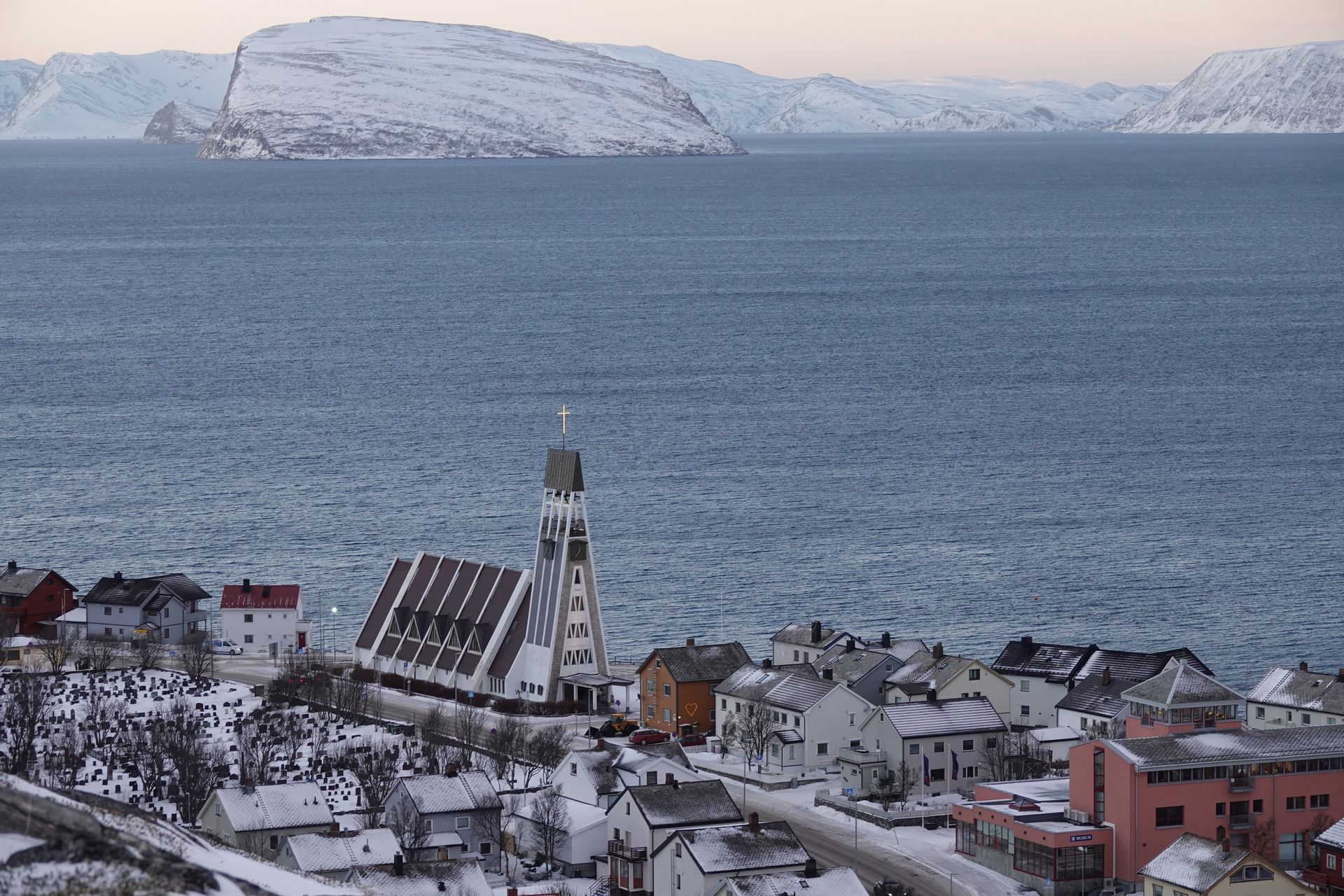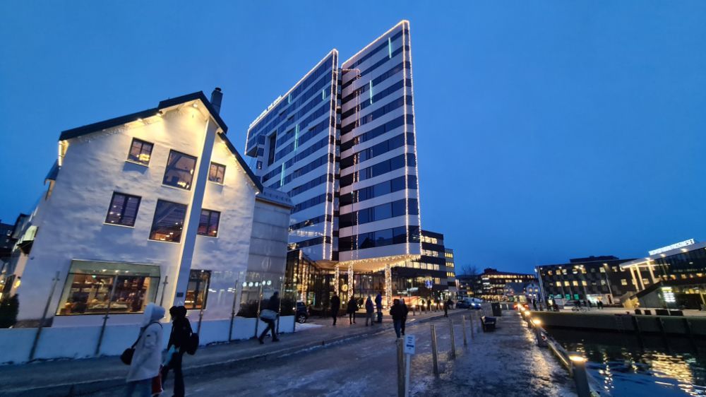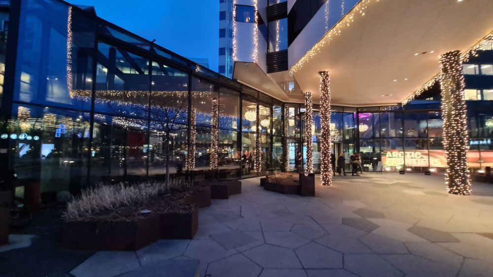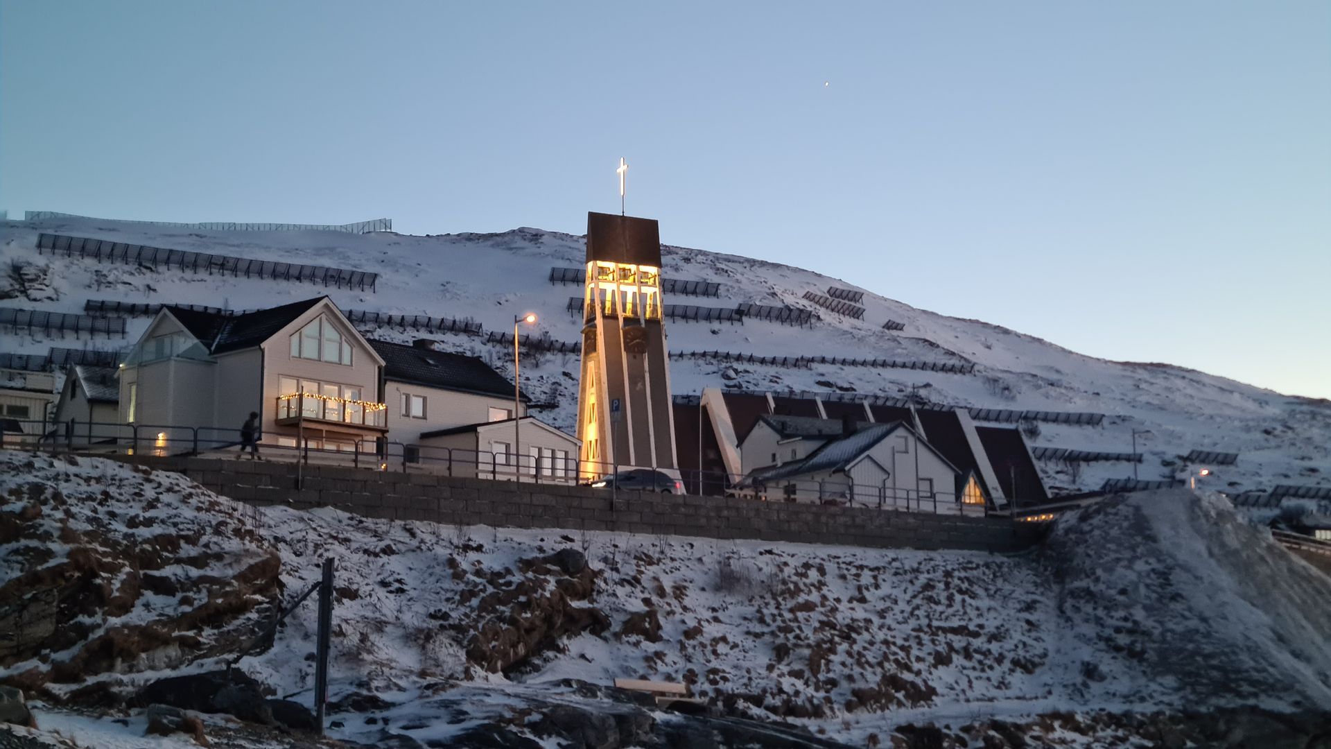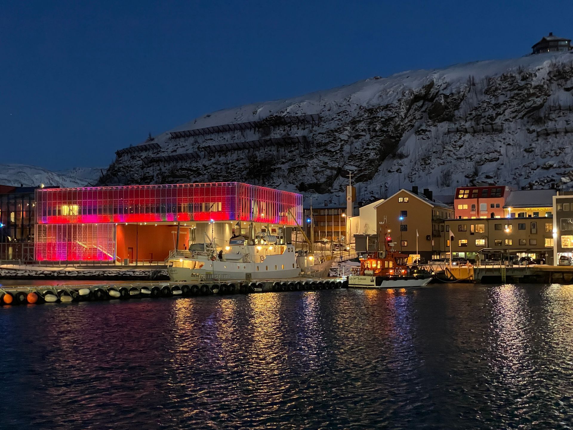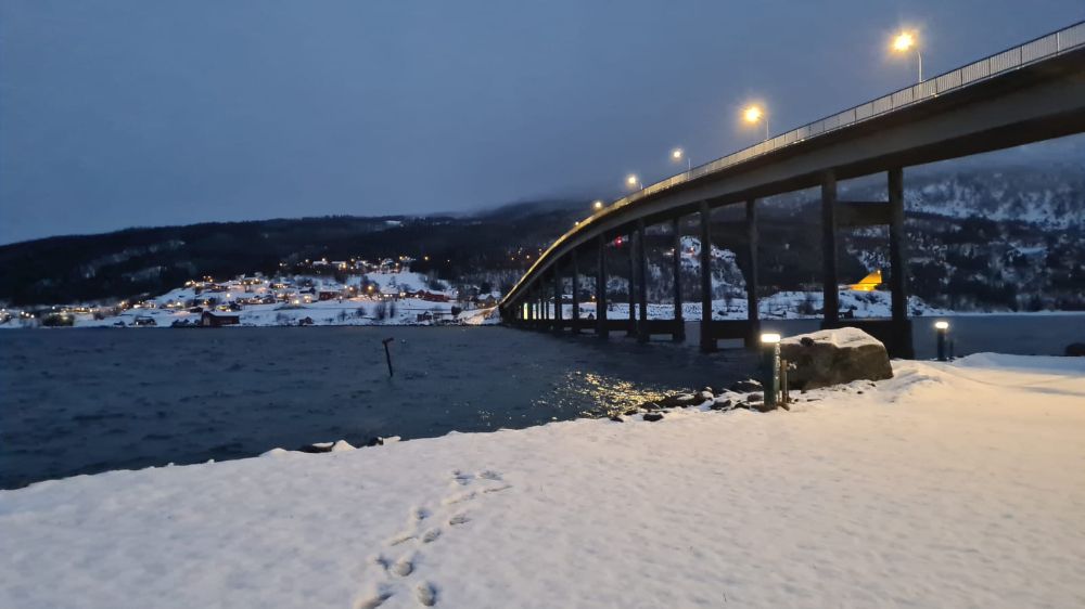 Wir fahren auch noch raus nach Forsol, aber der Übernachtungsplatz hier ist schlecht geräumt und irgendwie macht es uns auch nicht an, hier zu bleiben. Also kehren wir zurück in die Stadt auf den Stell-/Parkplatz, richten uns etwas ein und dann geht's auf einen Spaziergang durch das mittlerweile nächtliche Hammerfest.