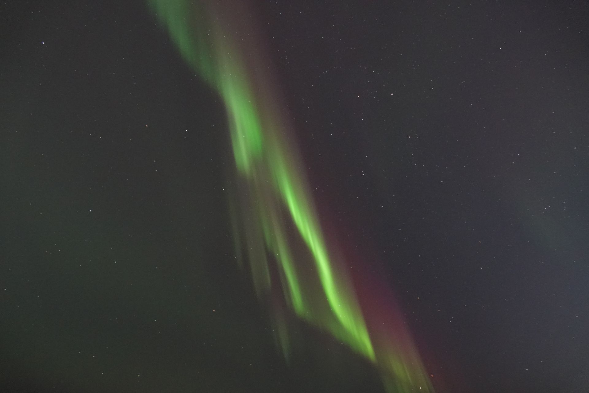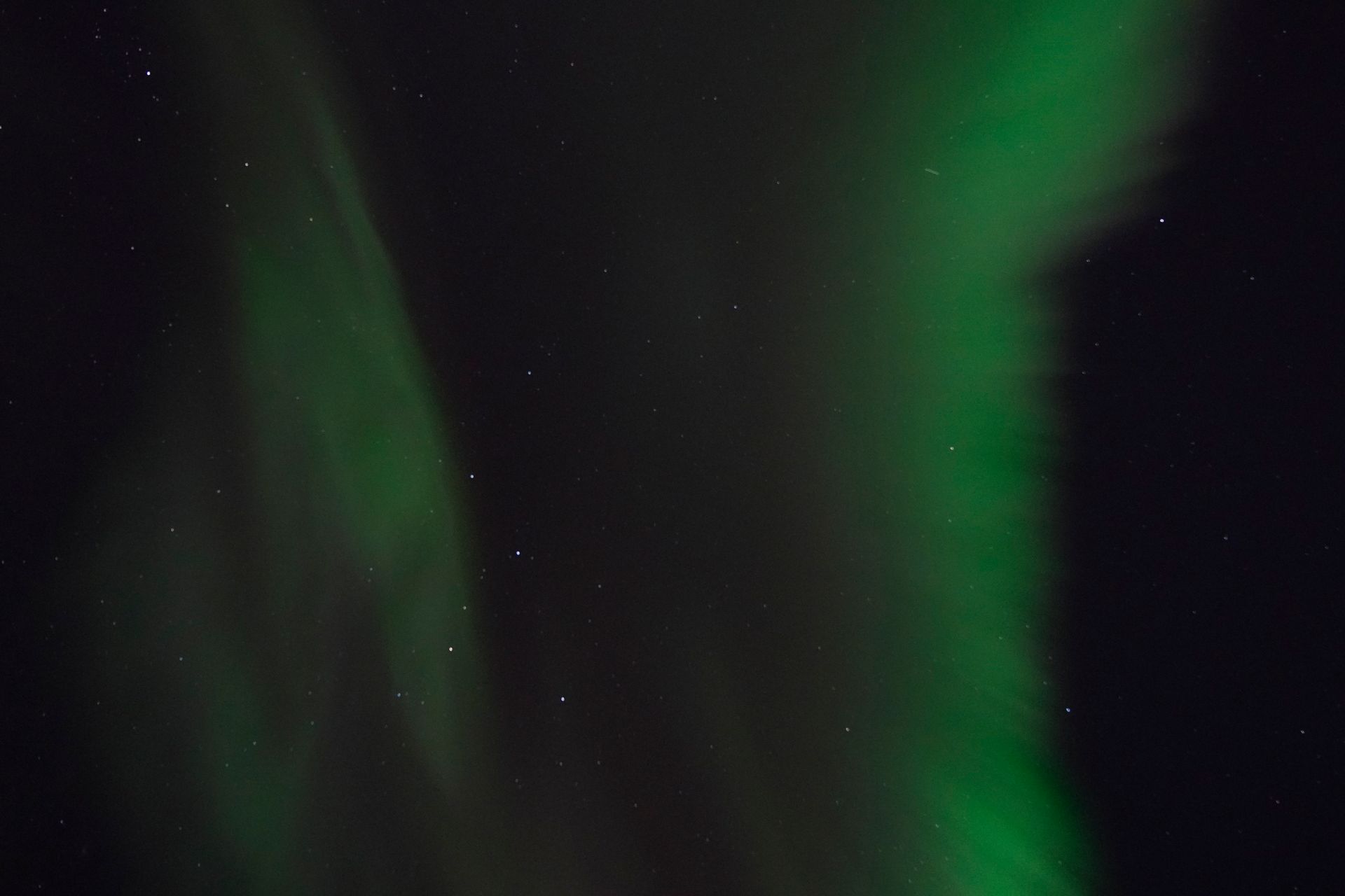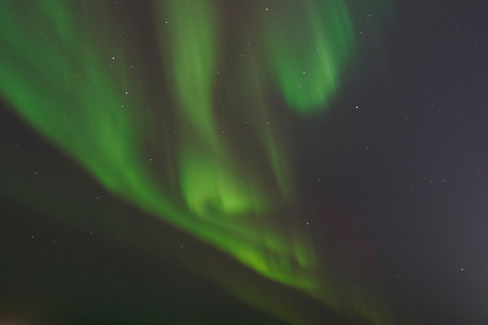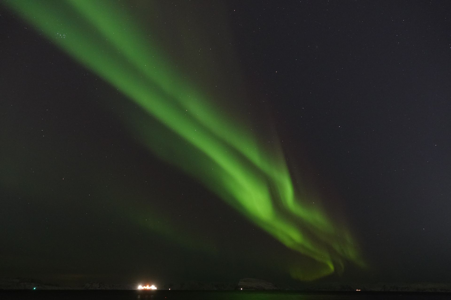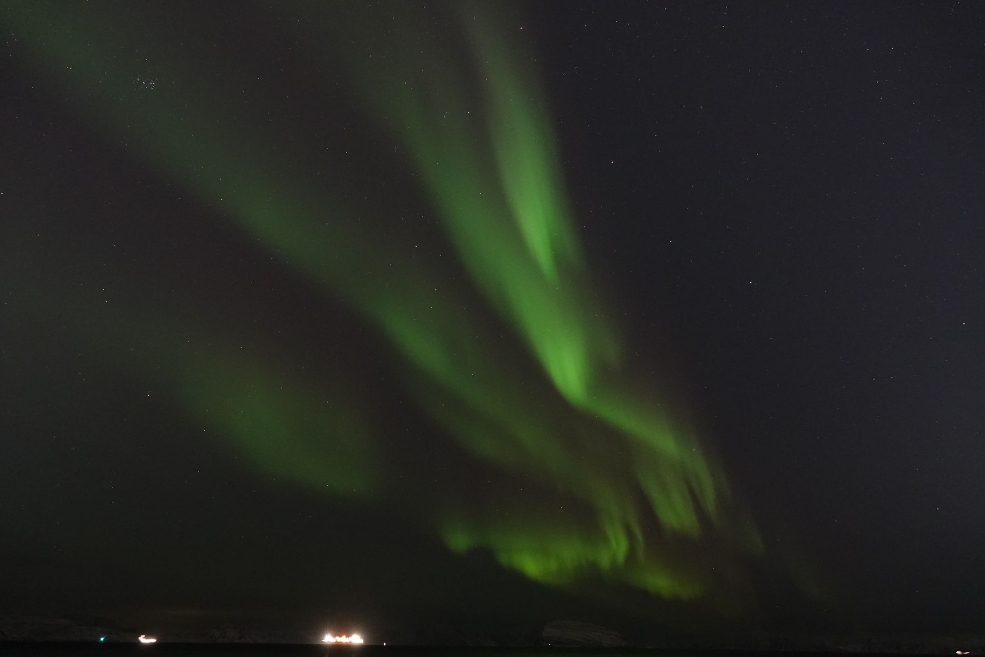 So plötzlich wie der heftige Wind gestern gegen 18 Uhr aufkam, so plötzlich ist er auch wieder verschwunden. So kamen wir gegen 22 Uhr nochmals zu einer Nordlichtshow und das bei angenehmen 0 Grad und Windstille. Da macht das Fotografieren so richtig Spass.