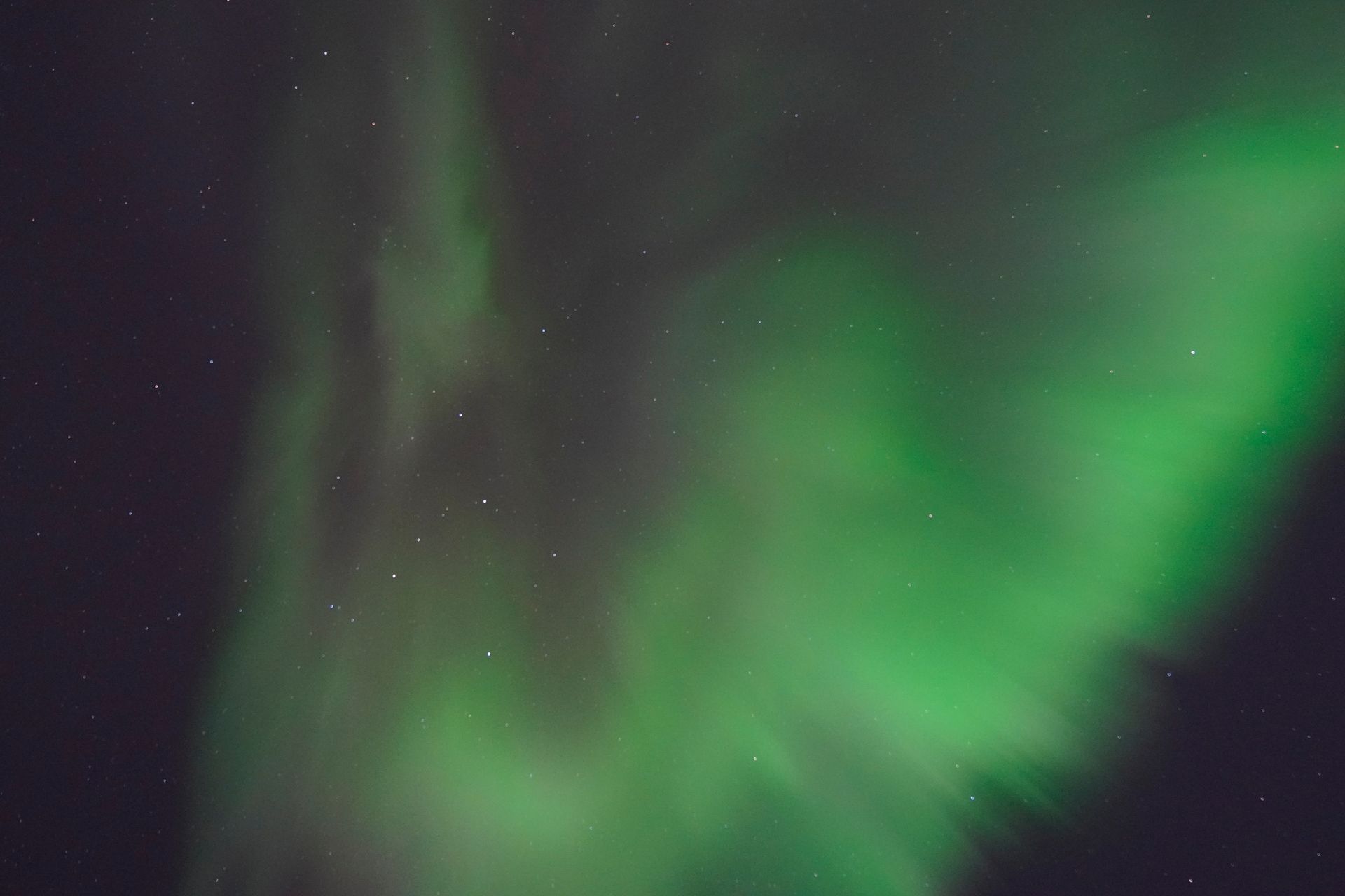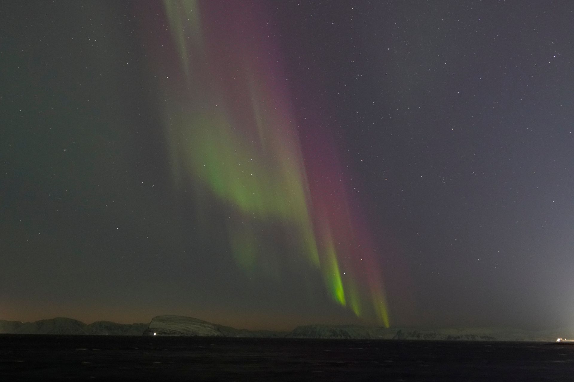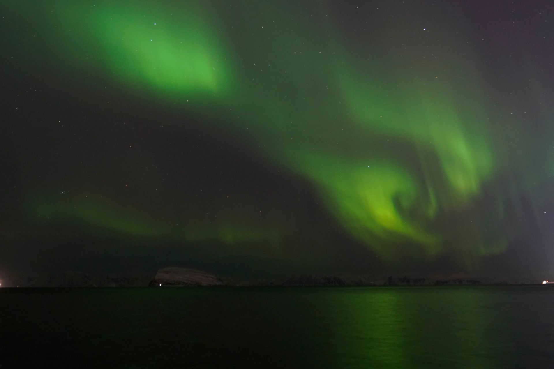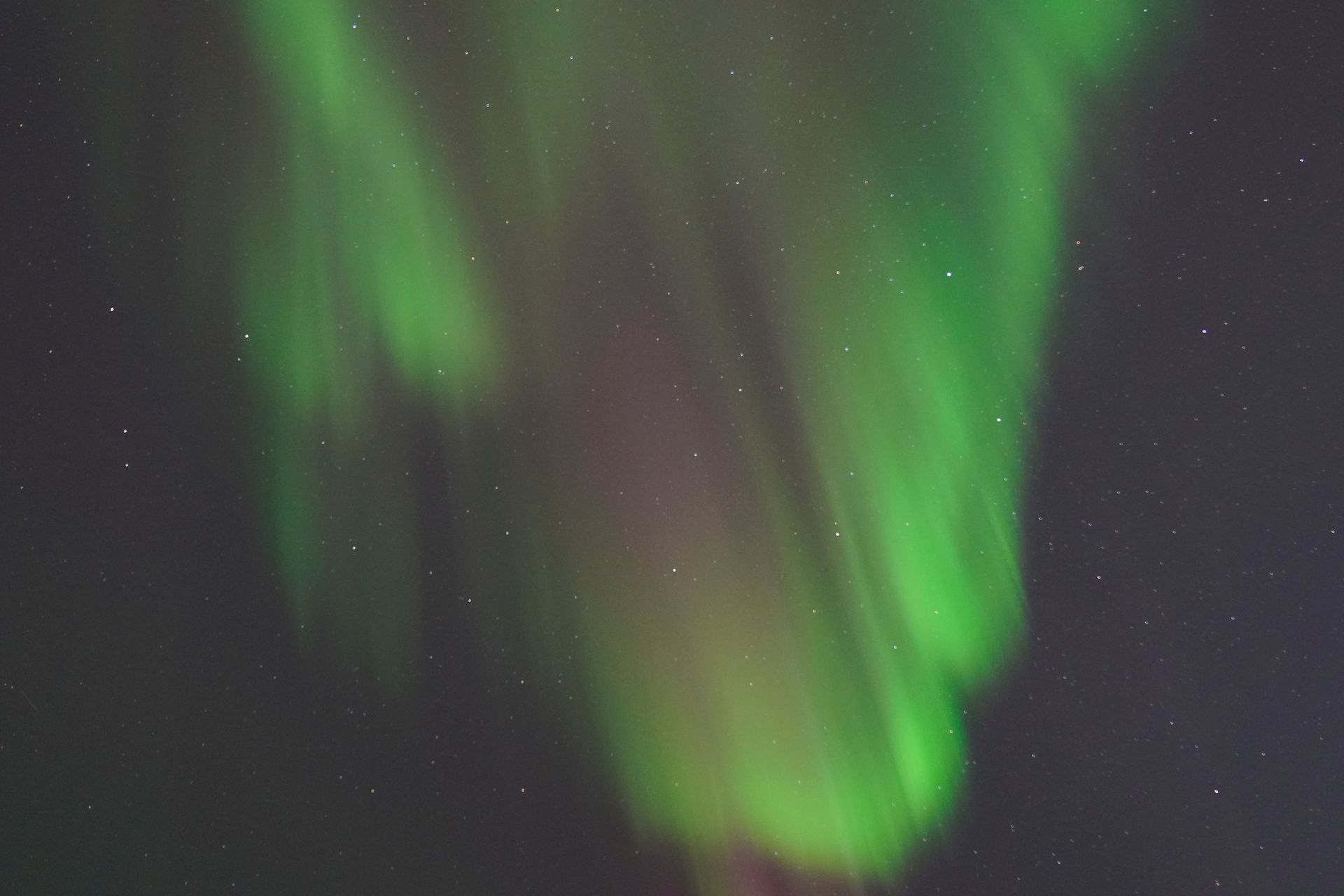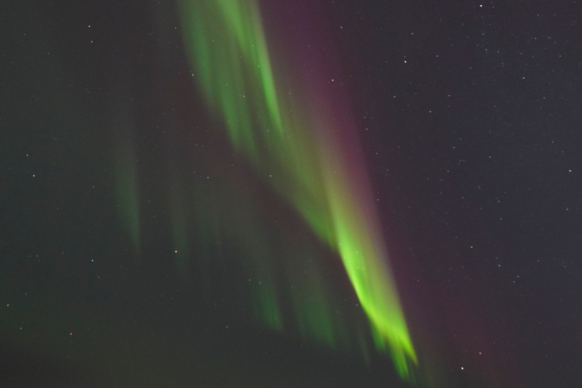 So plötzlich wie der heftige Wind gestern gegen 18 Uhr aufkam, so plötzlich ist er auch wieder verschwunden. So kamen wir gegen 22 Uhr nochmals zu einer Nordlichtshow und das bei angenehmen 0 Grad und Windstille. Da macht das Fotografieren so richtig Spass.