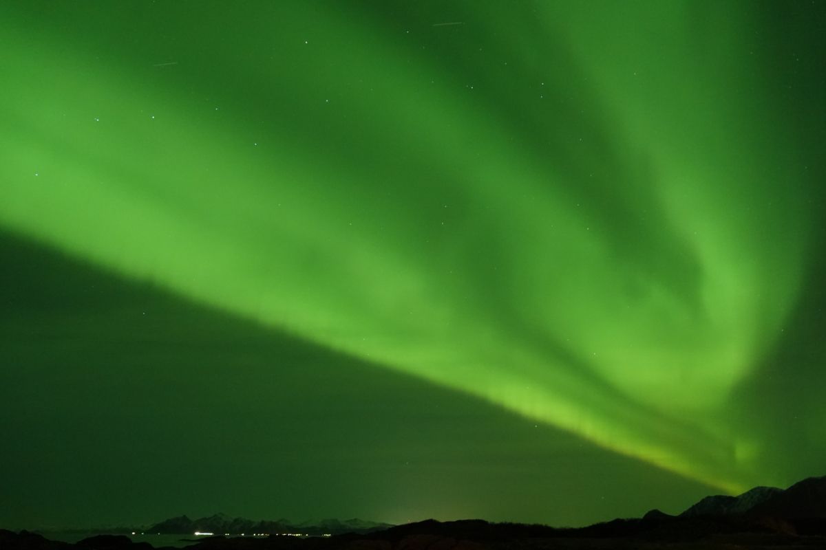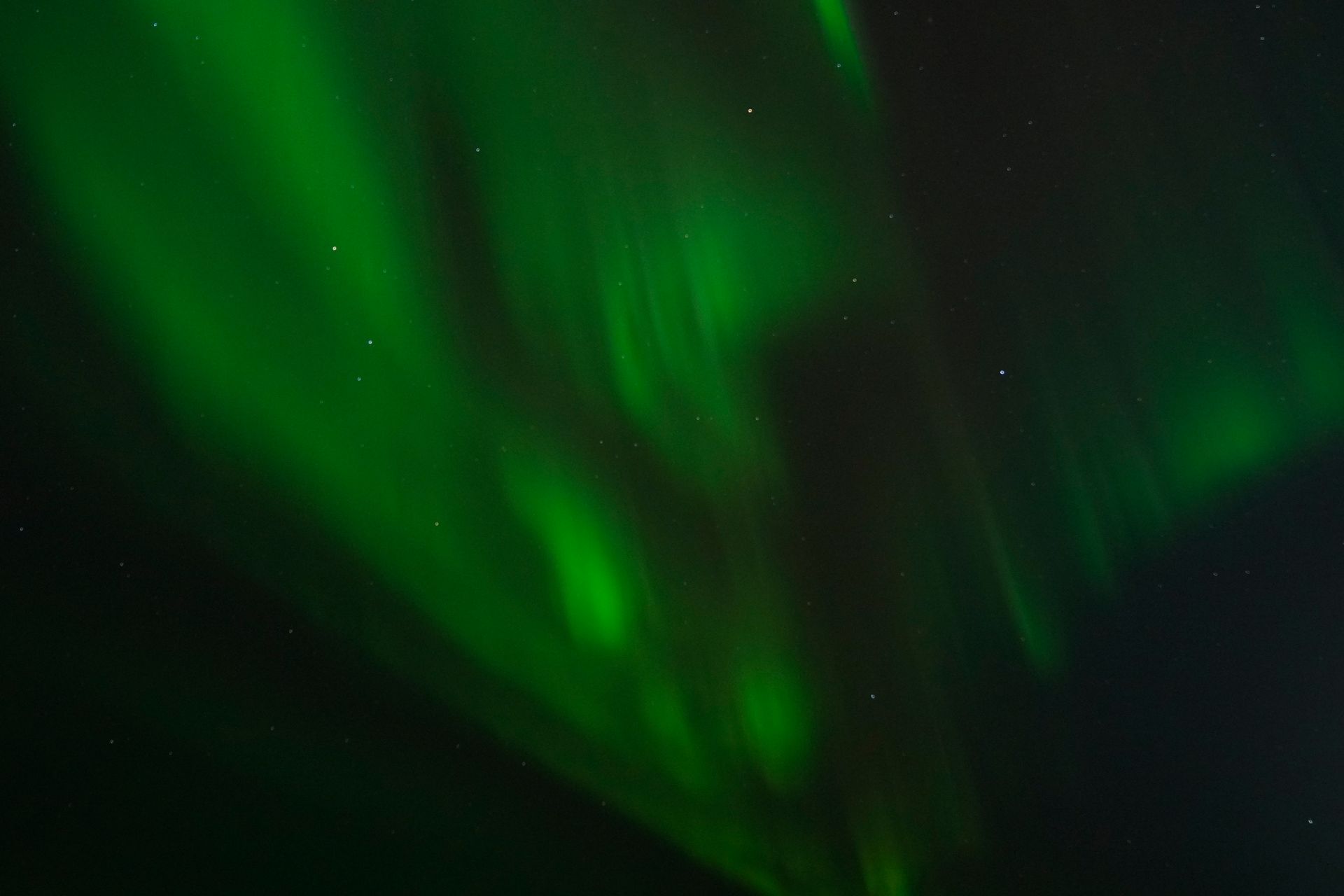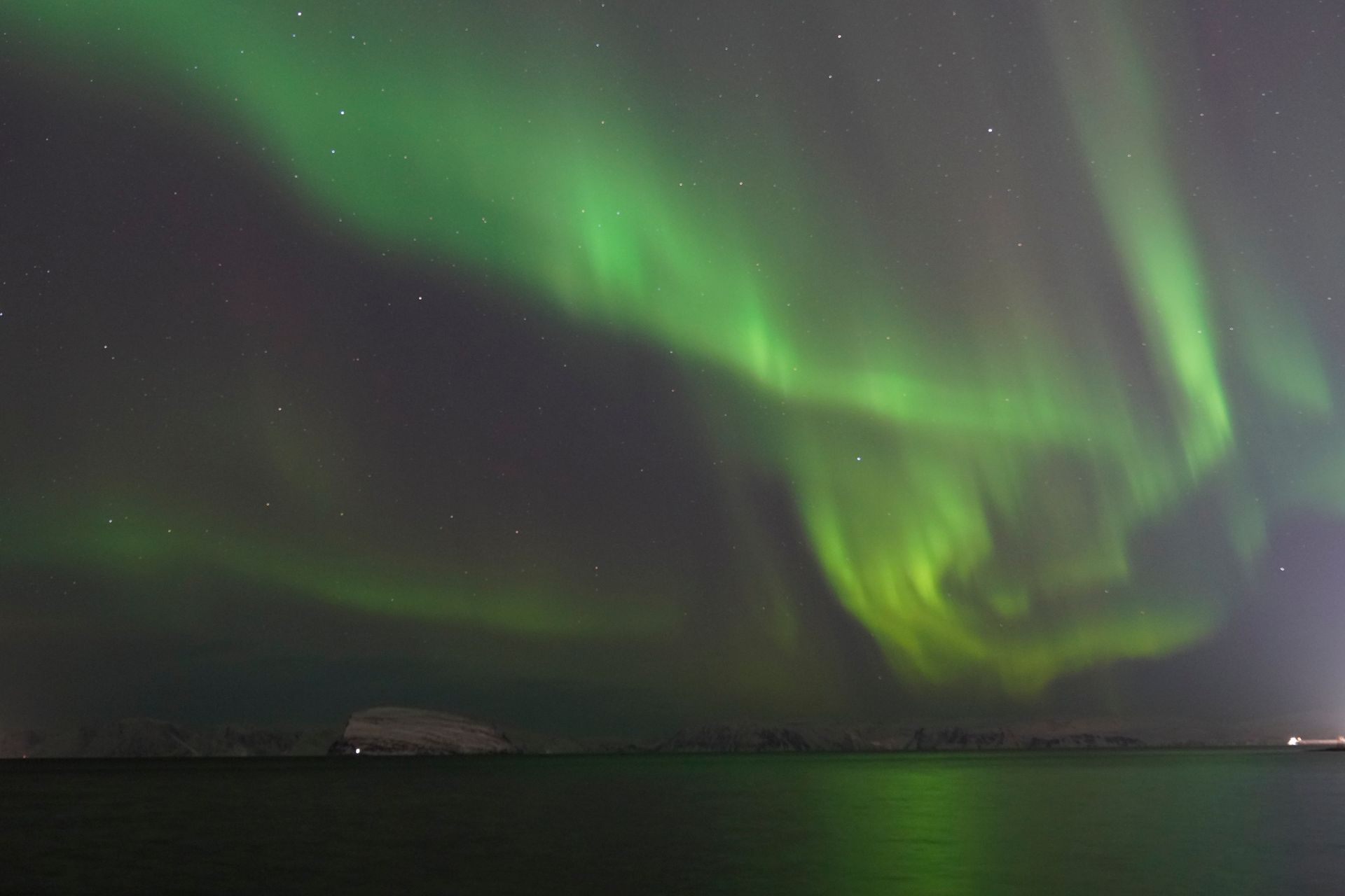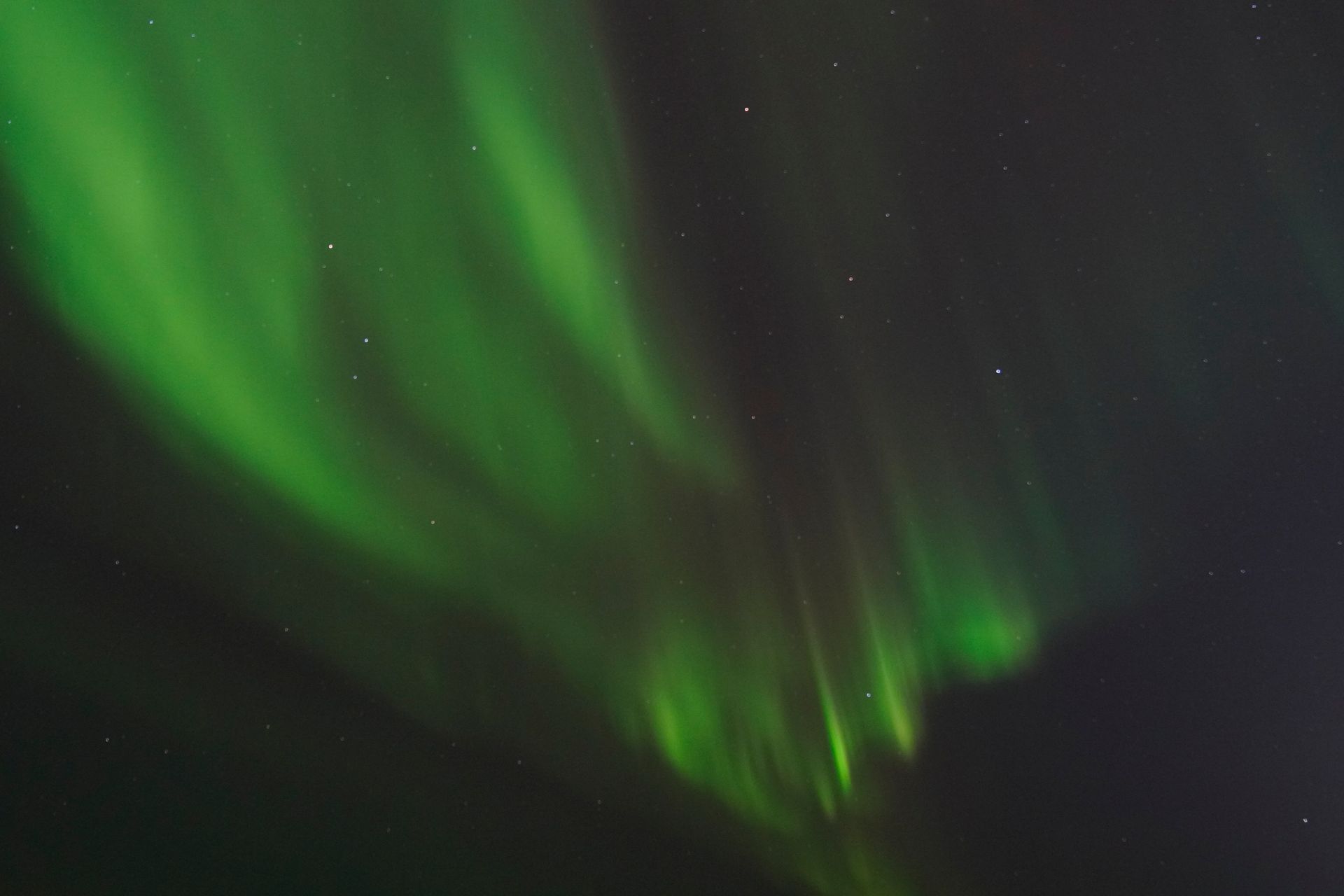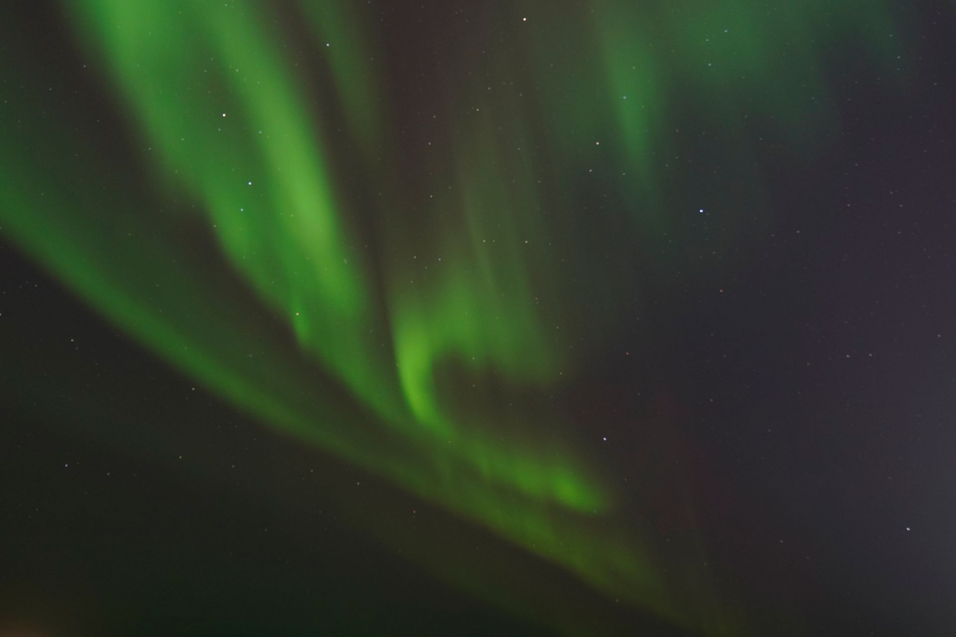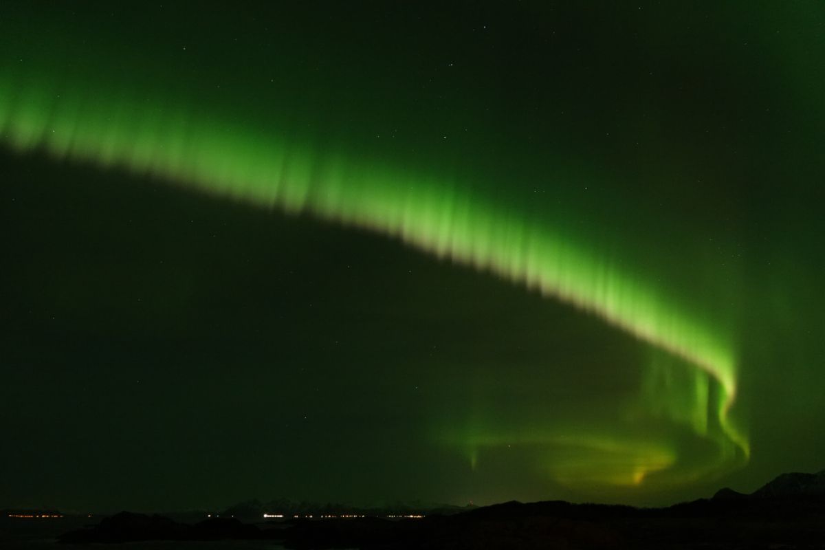 So plötzlich wie der heftige Wind gestern gegen 18 Uhr aufkam, so plötzlich ist er auch wieder verschwunden. So kamen wir gegen 22 Uhr nochmals zu einer Nordlichtshow und das bei angenehmen 0 Grad und Windstille. Da macht das Fotografieren so richtig Spass.