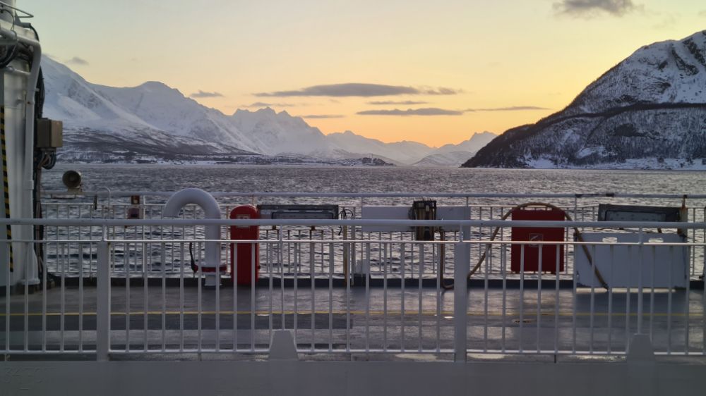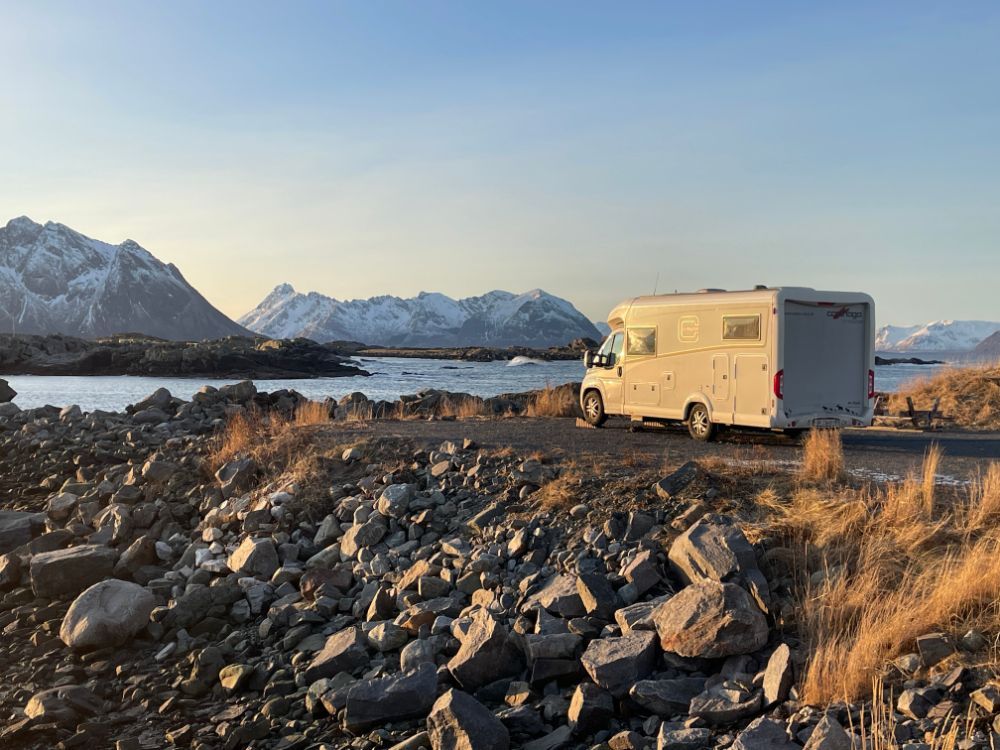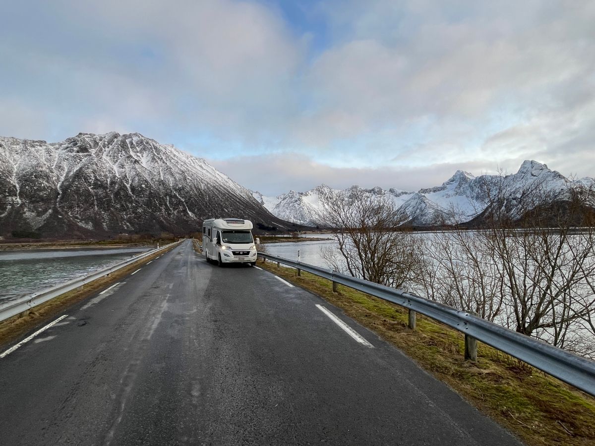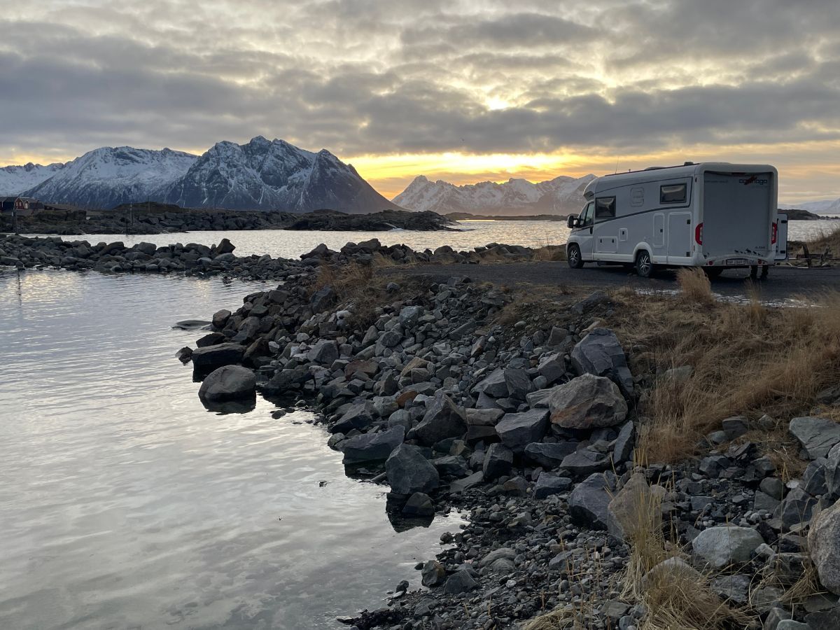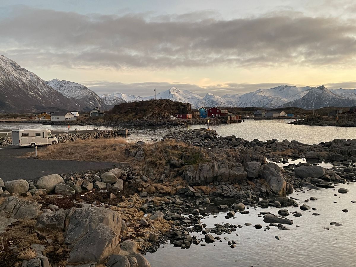 Bald stellen wir fest, wir fahren in die richtige Richtung. Das Wetter vor uns wird immer besser und der Wetterbericht verspricht bis Montag schönes Wetter mit klaren Nächten auf den Lofoten. Und so machen wir uns auf den Weg dahin. Die Fahrt ist einmal mehr wunderschön, der Verkehr ist sehr moderat und wir können es so richtig geniessen. Wir entscheiden uns gegen den Stellplatz bei Rolf's Bar in Grunnfor (letzten Winter standen wir da) und fahren bis Laukvika. Und da heute sogar jemand zum Kassieren kommt, erhalten wir auch den Code zum Servicehaus. Letzten Winter kam niemand und dann hat man nur Zugang zum Strom und sonst nichts.