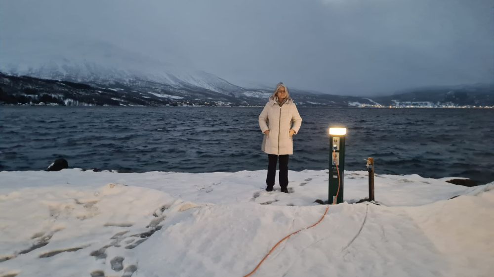 In Hammerfest schauen wir uns als erstes die Situation beim Stellplatz an. Eigentlich ist er nicht in Betrieb und dennoch kann man hier stehen. Man bezahlt einfach die normalen Parkgebühren von 8 Uhr bis 17 Uhr. V/E gibt es nicht, auch keinen Abfallcontainer, aber die Stromsäulen sind in Betrieb.