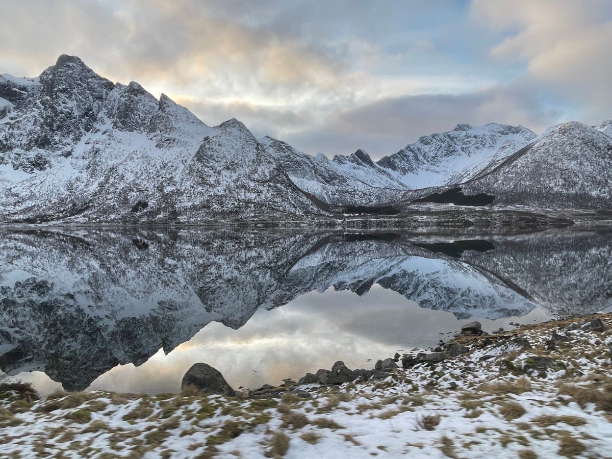 Es war eine lange Nacht und so schlafen wir heute einfach aus und starten dann in einen strahlend schönen Tag. Wer um diese Jahreszeit hier Station macht, muss sich bewusst sein, dass es sich nicht um die sonnenverwöhnste Ecke der Lofoten handelt. Die Berge am Horizont sind hoch und die Sonne braucht Zeit, bis sie auftaucht und verschwindet halt auch so gegen 14.30 Uhr schon wieder. Aber uns stört das nicht. Wir bleiben hier. Da wir ganz alleine hier stehen können wir in aller Ruhe eine Waschmaschine starten und auch den Trockner macht uns niemand streitig. Dann wäre das doch auch mal wieder erledigt.