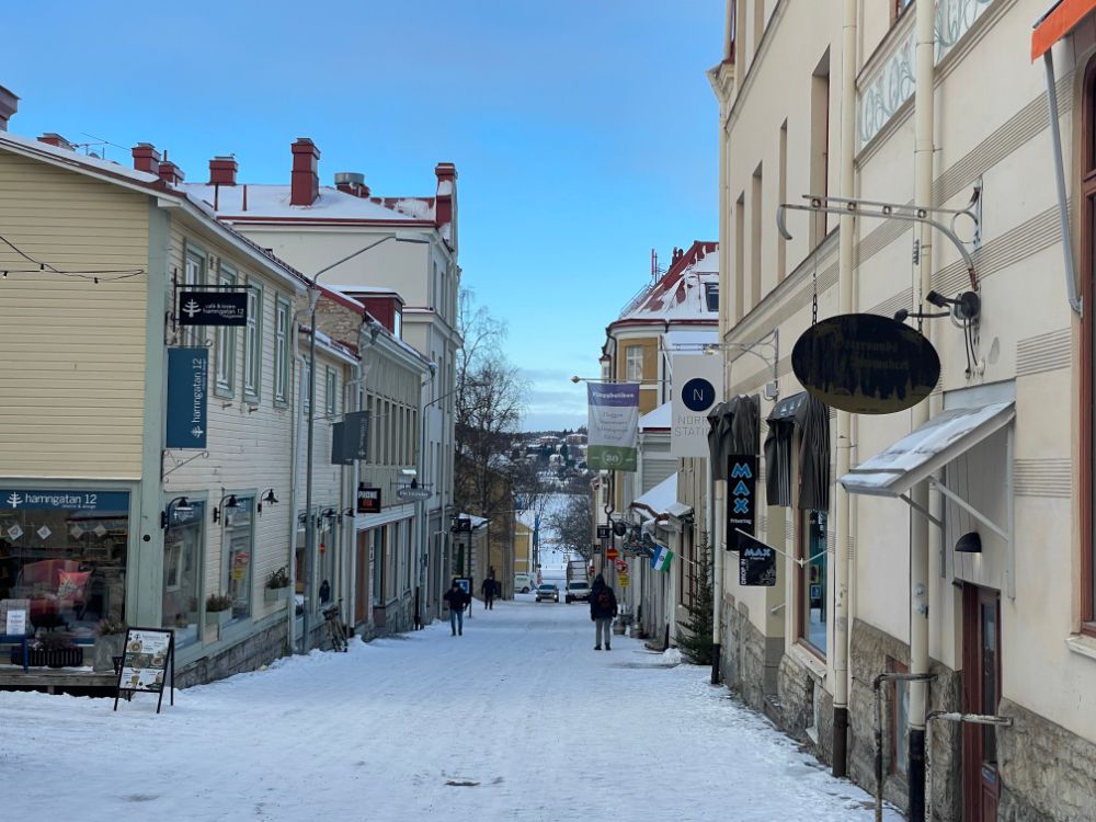 Nach dem Frühstück machen wir uns auf, die Fussgängerzone von Östersund zu entdecken. Das macht bei diesem strahlend schönen Wetter so viel Spass, dass wir gleich noch eine kleine Seewanderung dranhängen.