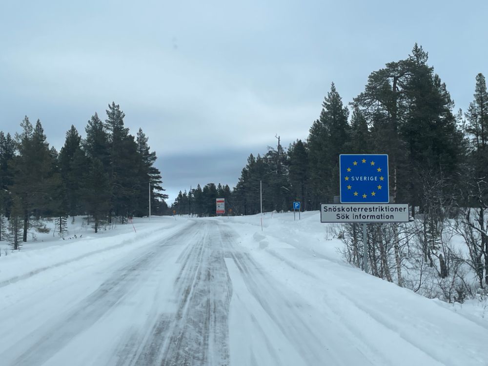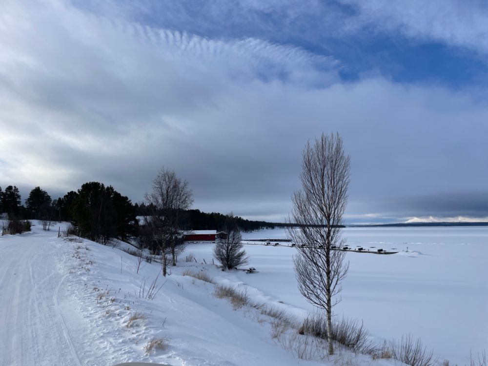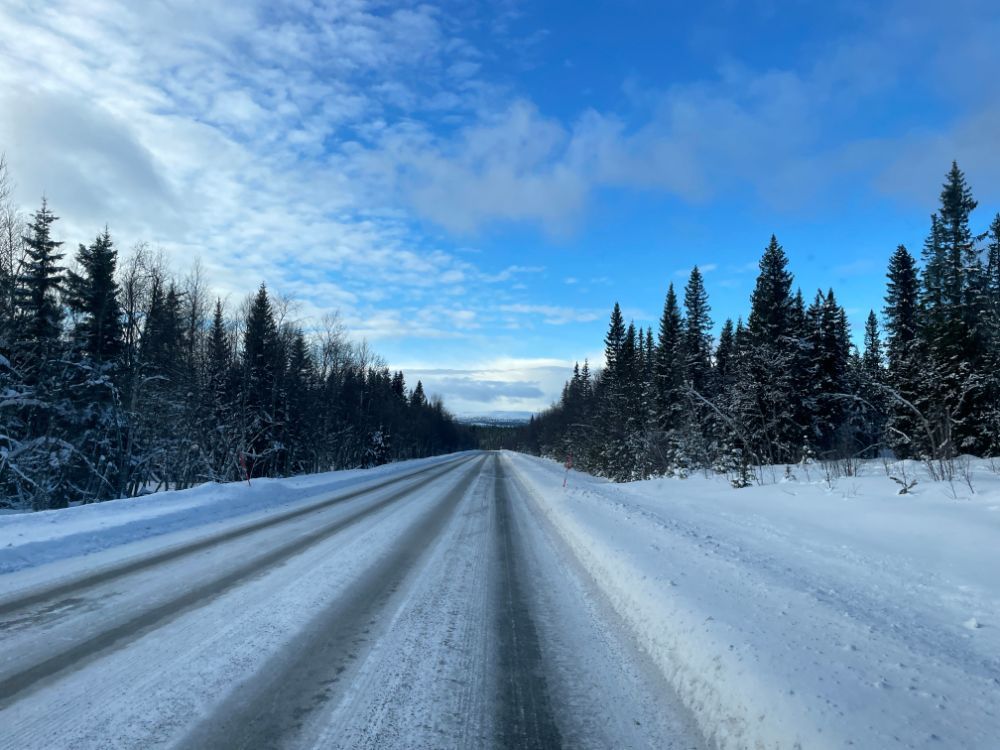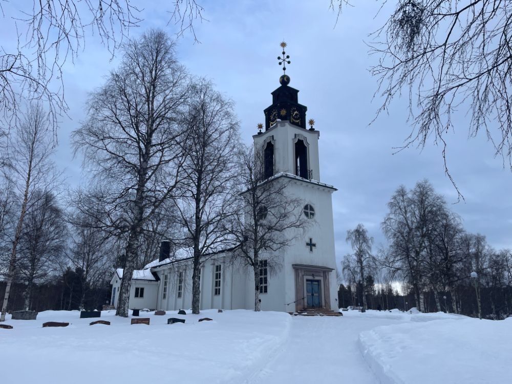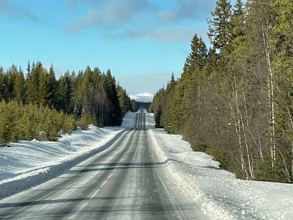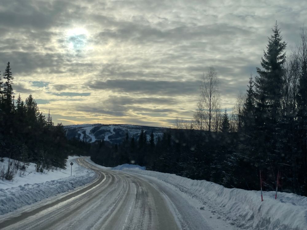 Noch mitten im Dorf Elga nehmen wir die "Finken" wieder runter, fahren bei der Kirche vorbei und tuckern einmal mehr durch herrliche Winterlandschaft Richtung Idre. Nur der vielversprechende Wetterstart weicht bald einem etwas einheitlichen Grau. Ach egal, wir geniessen die Fahrt trotzdem!
