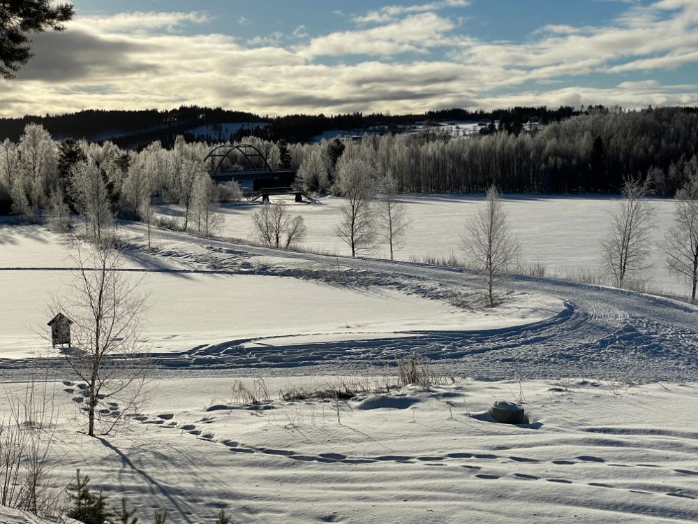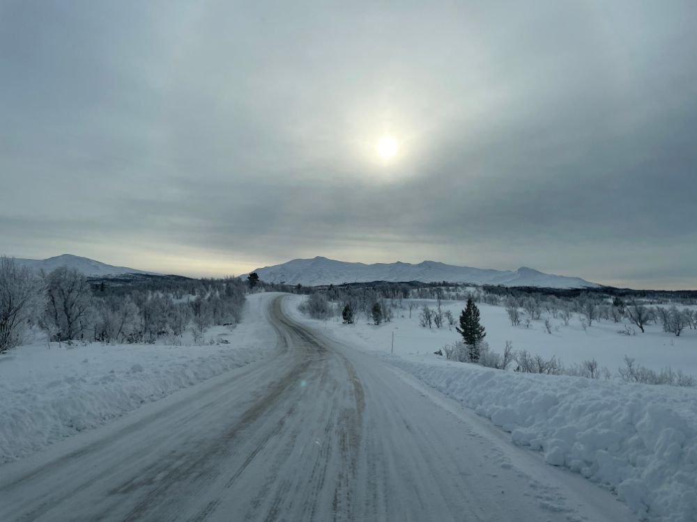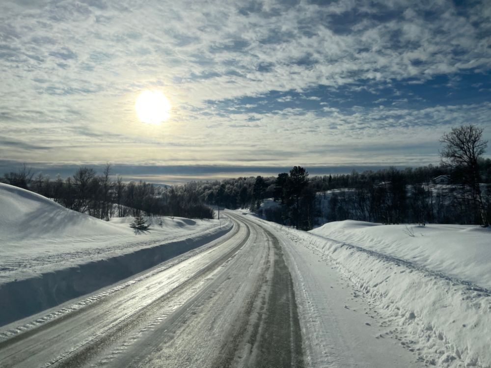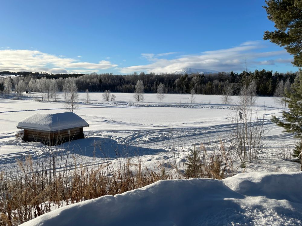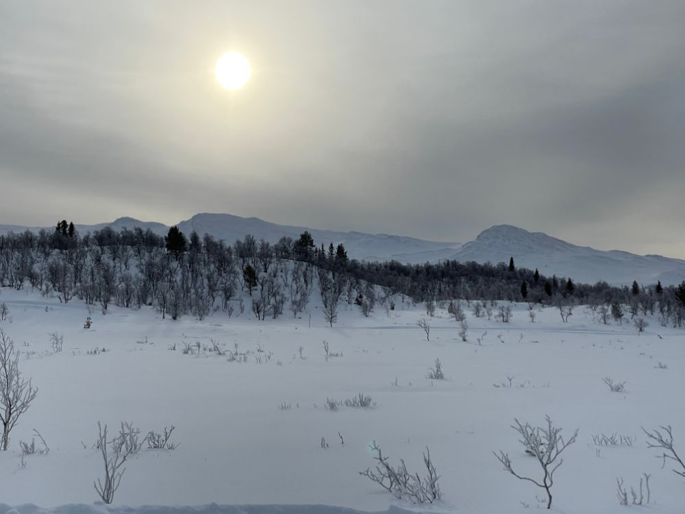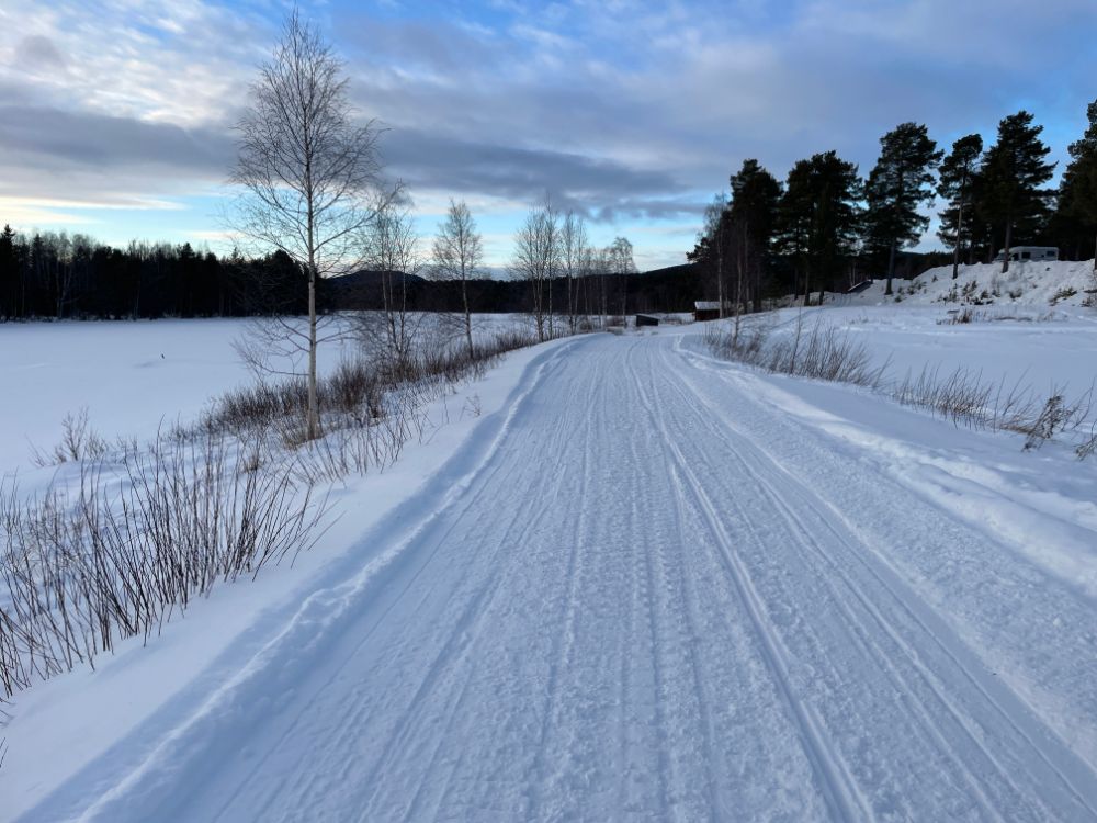 Noch mitten im Dorf Elga nehmen wir die "Finken" wieder runter, fahren bei der Kirche vorbei und tuckern einmal mehr durch herrliche Winterlandschaft Richtung Idre. Nur der vielversprechende Wetterstart weicht bald einem etwas einheitlichen Grau. Ach egal, wir geniessen die Fahrt trotzdem!