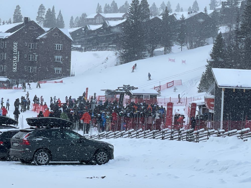 Die Parkplätze sind voll und an den Liften heisst es anstehen. Ein Bild das man in Schweden nicht so oft antrifft.