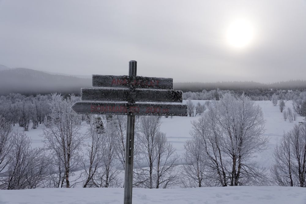 Oben auf der Passhöhe ist der Parkplatz auf der einen Seite grosszügig geräumt und was man so gar nicht erwartet - mit einer Pistenmaschine wurde eine perfekte Langlaufloipe gespurt. Daneben kann man natürlich auch zu einer Winterwanderung starten. Wir geniessen diese spezielle Atmosphäre hier oben, machen uns dann aber auf den Weg zurück nach Funäsdalen. Denn unser eigentliches Ziel heute ist der Wintermarkt in Roros.