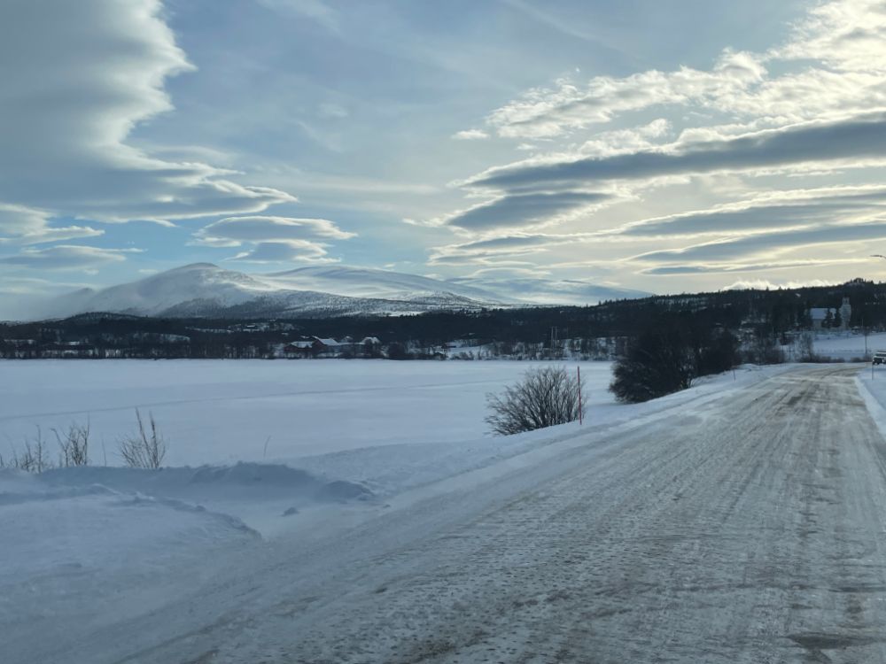 Wir wollen ja heute weiter Richtung Roros fahren. Bis Älsanden sind wir auf der E45 unterwegs, stellen da aber den Blinker nach rechts und weiter geht's auf der 316. Auf dieser Route kommt man im Ort Klövsjö vorbei. Das gleichnamige Skigebiet hier interessiert uns gerade nicht, dafür vielmehr