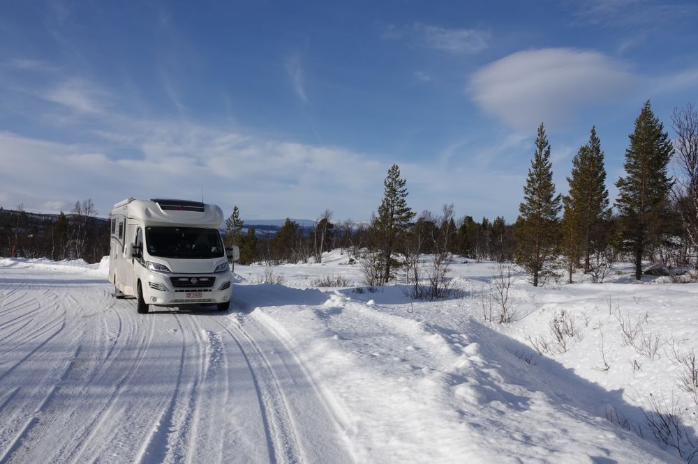 Wir sind gerade in einem Wetterhoch. Auch heute starten wir in einen wunderschönen Wintertag. Wir geniessen zuerst die herrlich warmen Duschen auf dem Platz und nach dem Frühstück, so gegen 10.30 Uhr fahren wir ab und gondeln durch eine perfekte Winterlandschaft unserem nächsten Tagesziel entgegen.