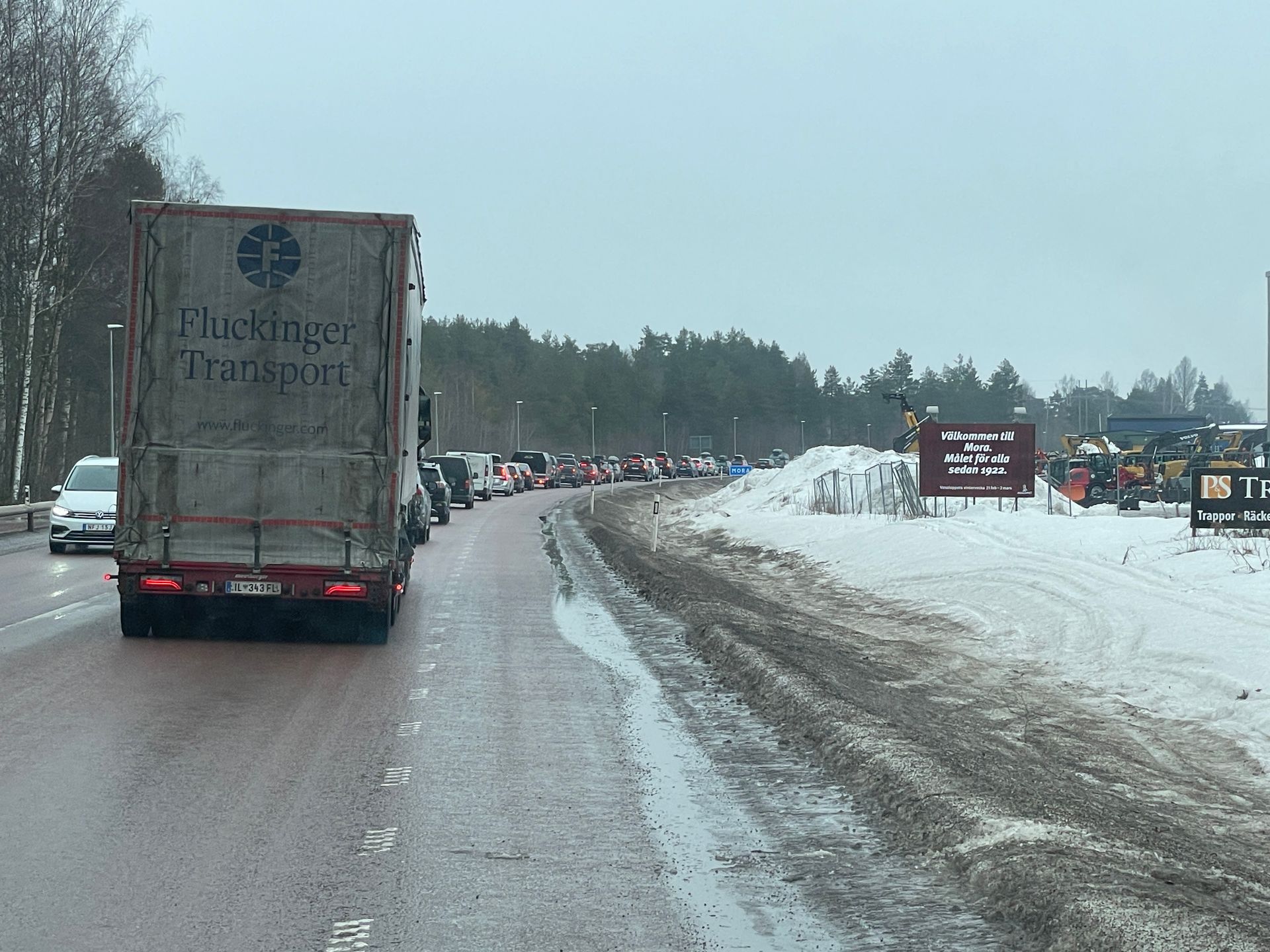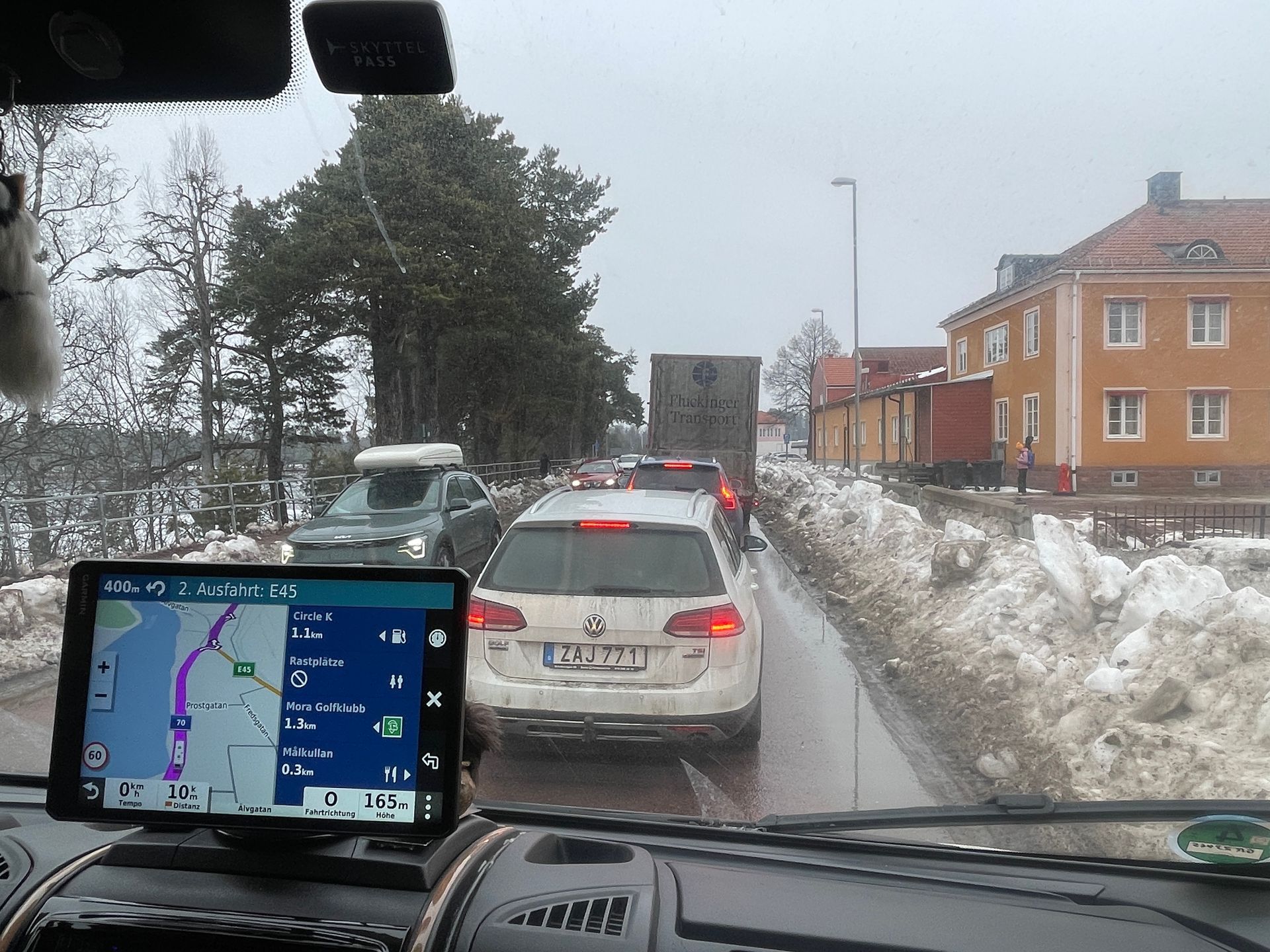 Ach ja, der Verkehr ist nach all den Wochen im Norden richtig gewöhnungsbedürftig. Alle möglichen Nationen reisen Richtung Norden, einige davon sicher nach Mora. Am Vasalauf vom kommenden Sonntag sollen ca. 16'500 Läufer teilnehmen! Aber auch Richtung Süden sind viele Schweden unterwegs, die Skiferien in vielen Regionen gehen heute zu Ende.