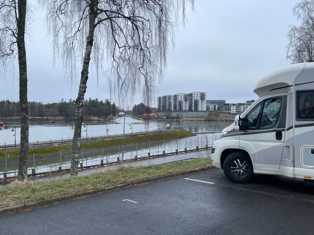 Aber immerhin bleibt bei uns der Regen heute aus. Und so starten wir kurz nach unserer Ankunft auf dem Stellplatz in Trollhättan die Aktion