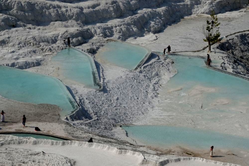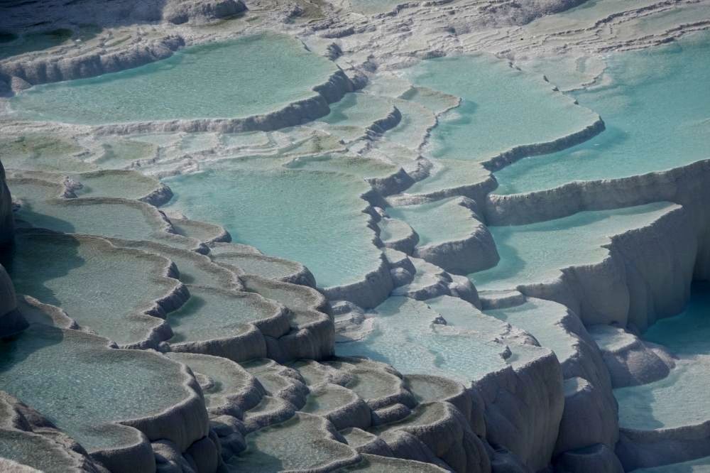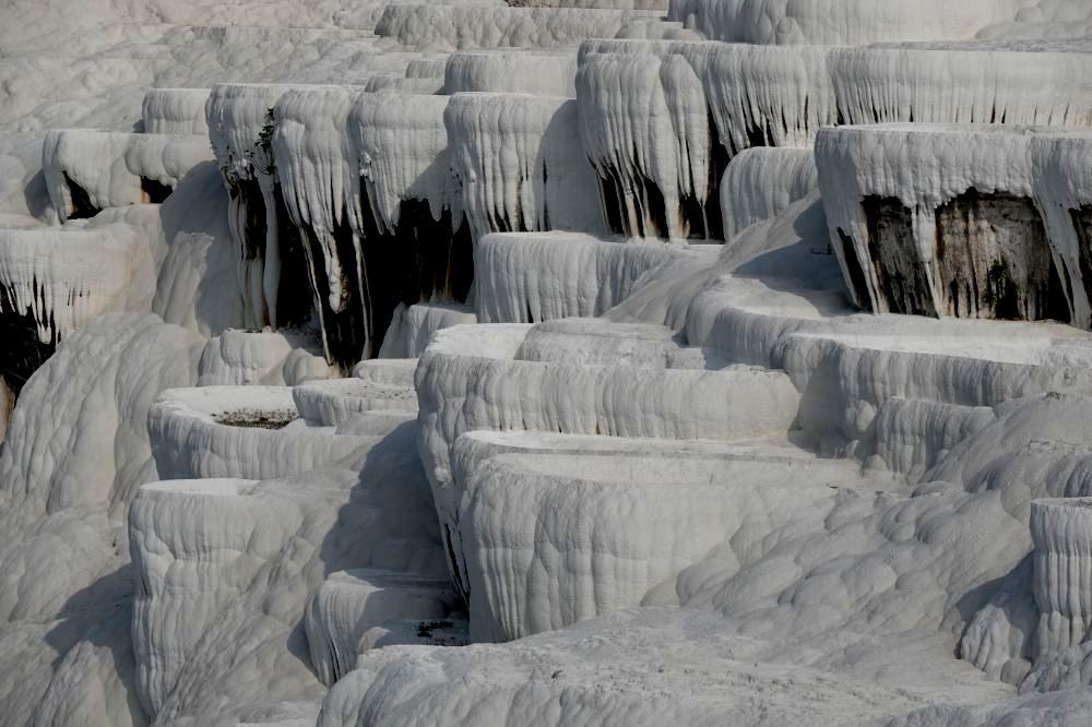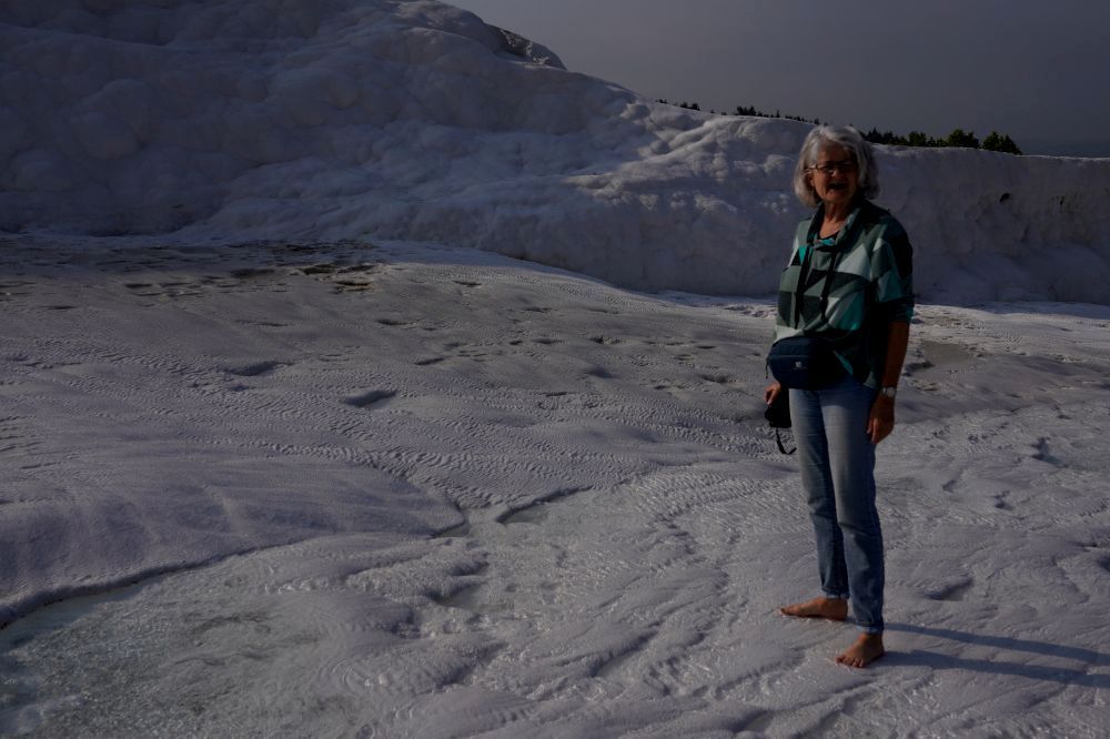 Wir zahlen die 60 Euro für zwei Personen. Nach 100 Metern müssen wir unsere Schuhe ausziehen, denn die Kalksteinfelsen darf man nur noch Barfuss begehen. Wir geniessen und bestaunen dieses Naturwunder und oben angekommen kann man auch noch durch die antike römische Bäderstadt Hierapolis wandern. So vergehen Stunden und wir haben immer noch nicht alles gesehen.
