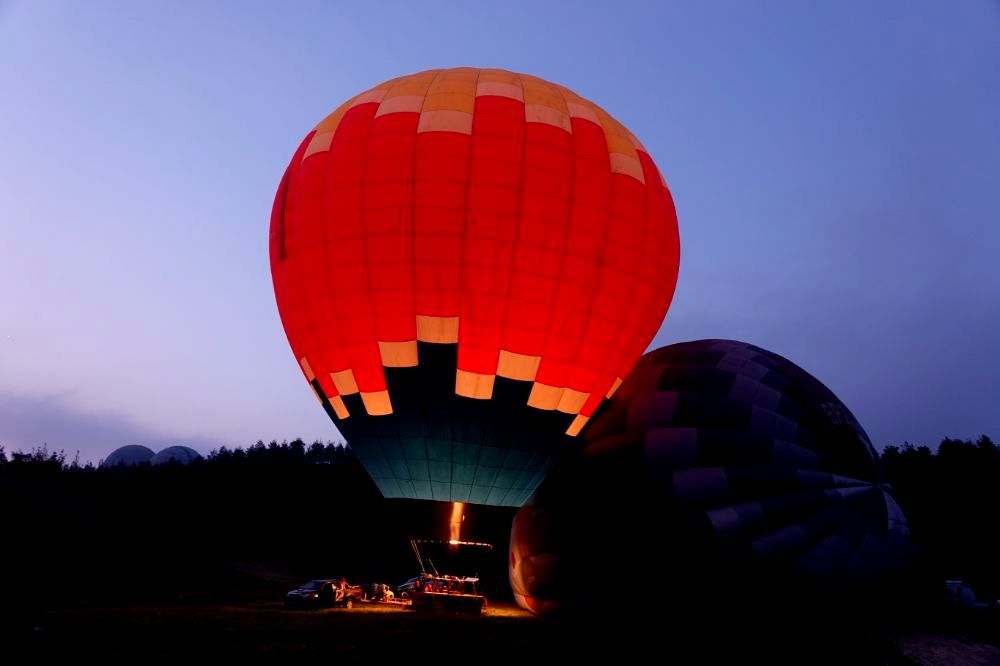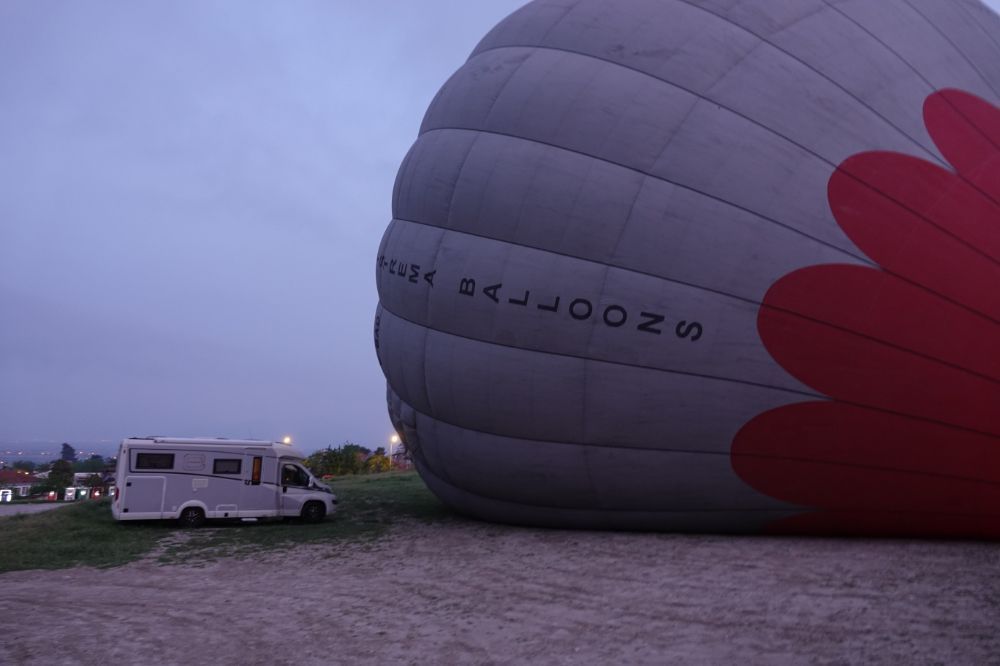 Der Wecker würde um 5 Uhr klingeln! Aber noch vor dieser Zeit fahren die ersten Ballontransporter auf den Platz! Wir schaffen es gerade noch den Kaffee zu kochen und dann hüpfen wir ganz schnell in unsere Kleider und schon sind wir draussen vor der Tür und beobachten das rege Treiben um uns herum. 5 Teams bereiten alles vor und wir staunen wie reibungslos, schnell und gekonnt dies alles abläuft. Zwischendurch gönnen wir uns einen Schuck Kaffee. Wir sind fasziniert wie ruhig gearbeitet wird und wie schnell diese Ballone auch in der Luft sind.