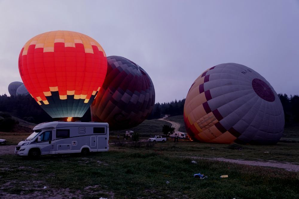 Auch heute Morgen können wir wieder den Start der Ballone mitverfolgen. Das unbeständige Wetter macht es den Ballonfahrern aber nicht leicht. Die Touristen wollen ihr Abenteuer, aber das Wetter sieht nicht optimal aus. So dauert es heute länger, bis alle fahren.