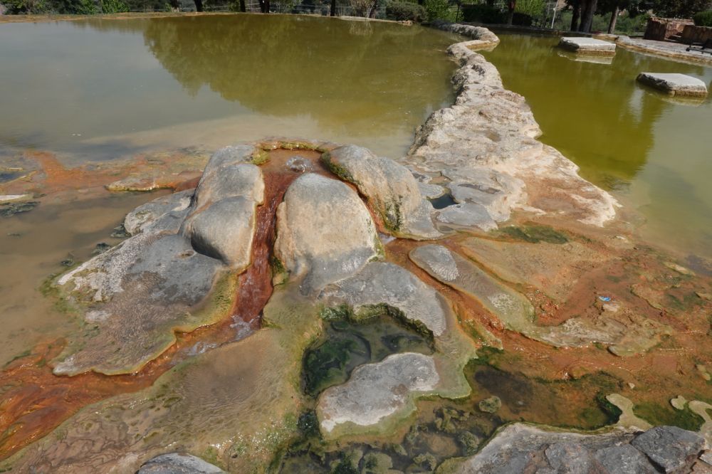 Wir starten erst mal in unsere Morgenroutine und fahren dann ins 7 Kilometer entfernte Nachbardorf Karahayit. Hier sind die braunen Quellen zu erkunden. Definitiv kein Touristenhotspot, lediglich ein paar Einheimische sind unterwegs. Während ich fotografiere unterhält sich Hansruedi mit einem Einheimischen ;-)