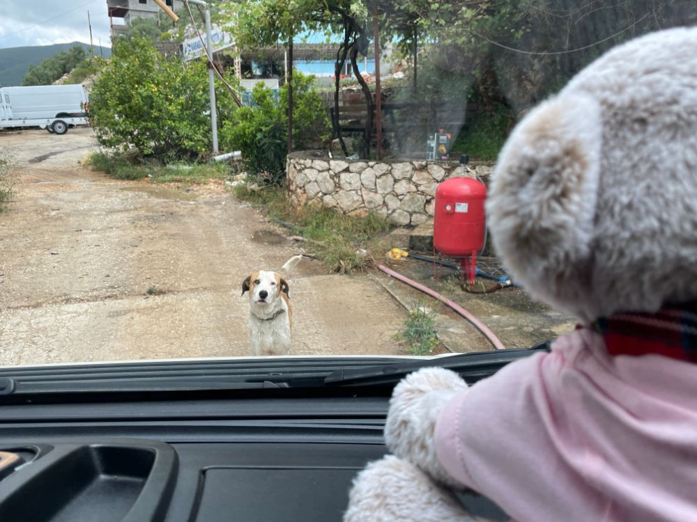 So verlassen wir den Saklikent-Nationalpark und kümmern uns als erstes um gutes Frischwasser. Irgendwo unterwegs finden wir einen gut anfahrbaren Brunnen und ein Strassenhund verliebt sich spontan und heftig in unser Gräni, das seit Januar 2024 mit uns auf Reisen ist. Er ist ganz traurig, dass wir wieder weiterfahren.