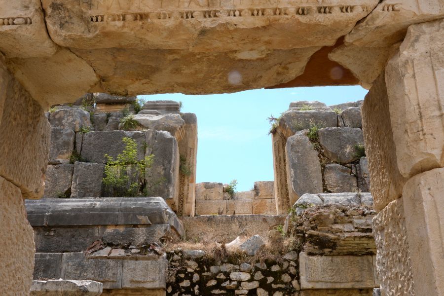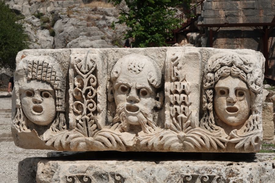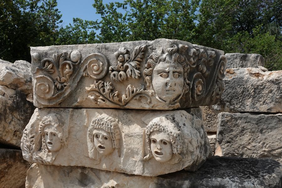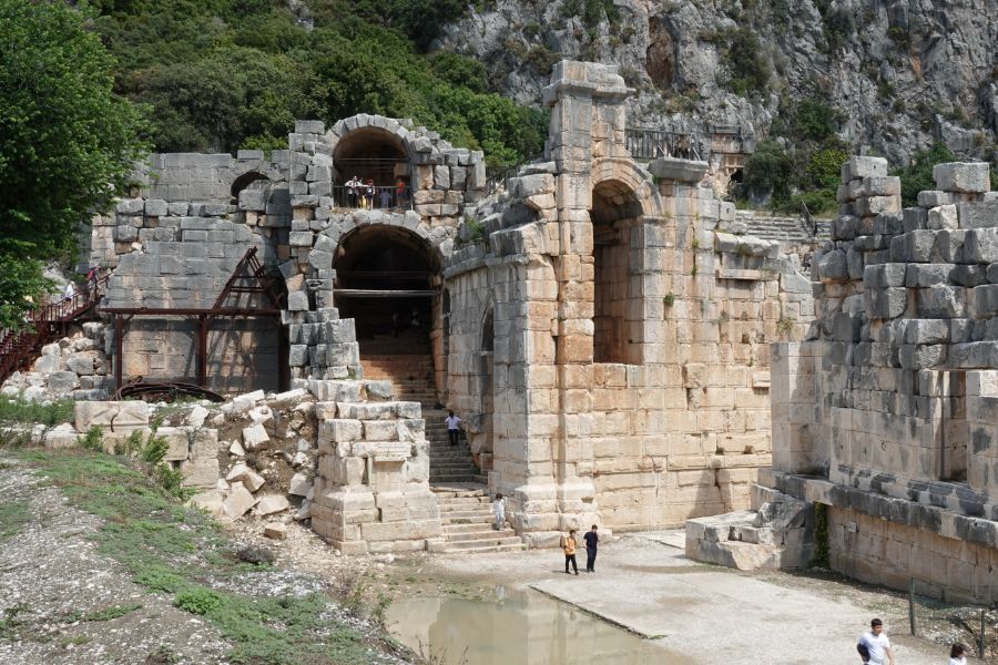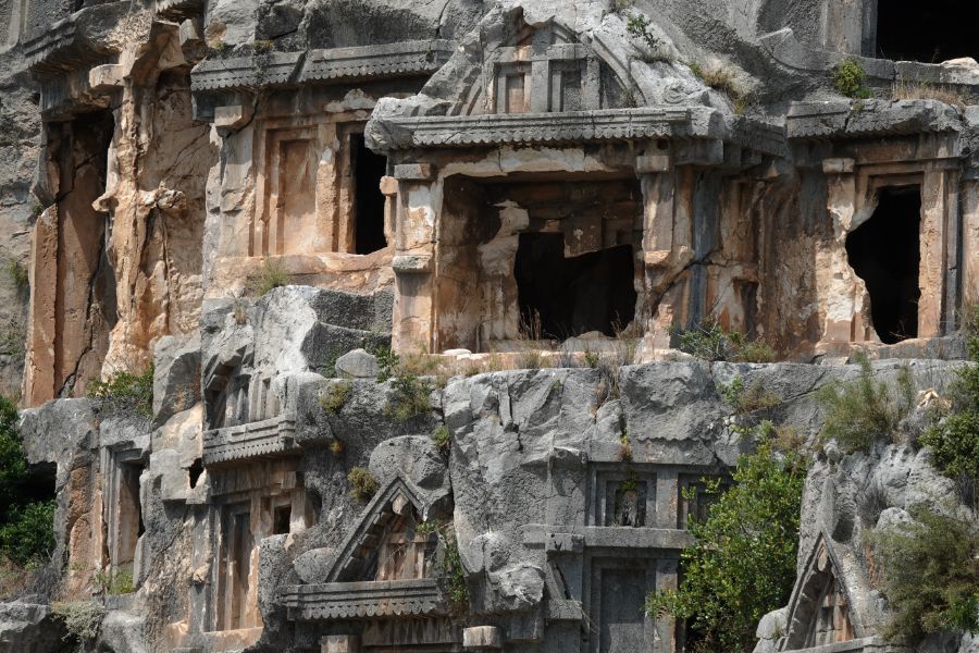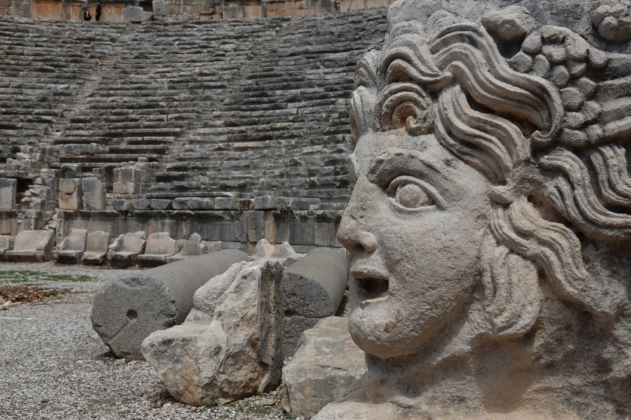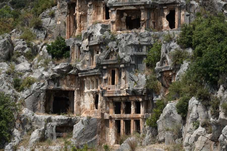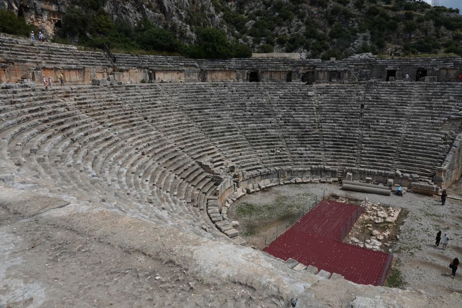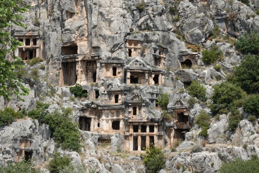 Wir tuckern weiter der lykischen Küste entlang und stoppen in Demre bei den Ruinen von Myra. Die lykischen Felsengräber sind beeindruckend.
