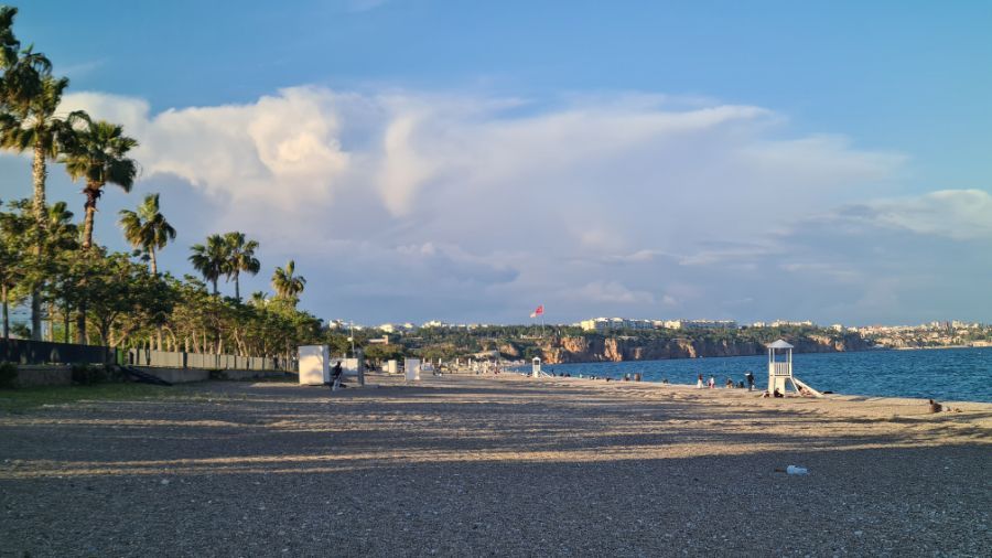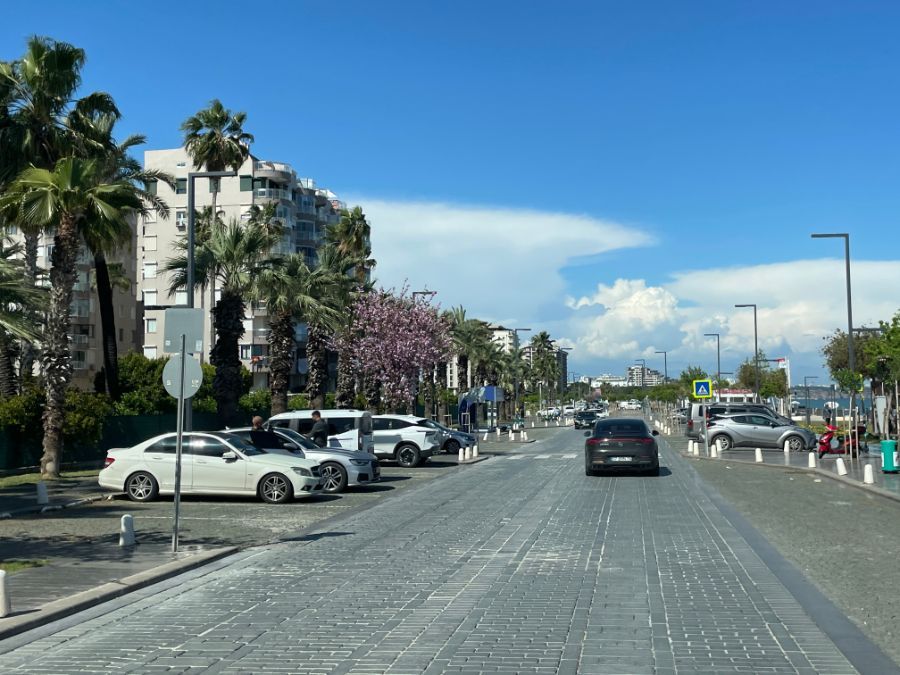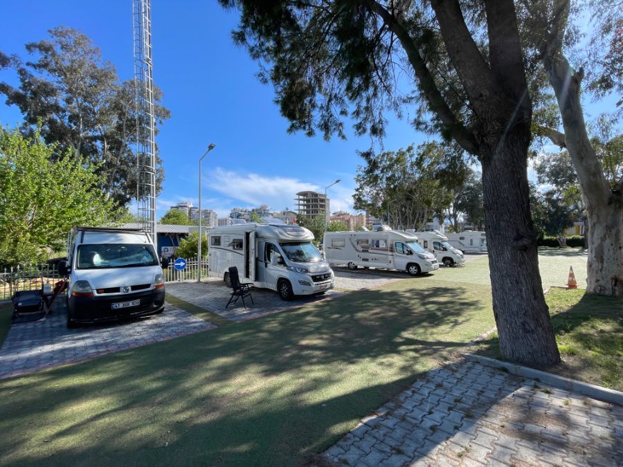 Was für ein Kontrastprogramm zu gestern. Das kleine Dorf Kekova gegen die Millionenstadt Antalya. Wir fahren ca. 7 Kilometer einer Promenade entlang, bis wir beim Stellplatz ankommen, und der ist sehr gut belegt. Es ist ratsam, nicht zu spät anzukommen. Wir sind um ca.16 Uhr da und im Laufe des Abends und der Nacht füllt er sich komplet.