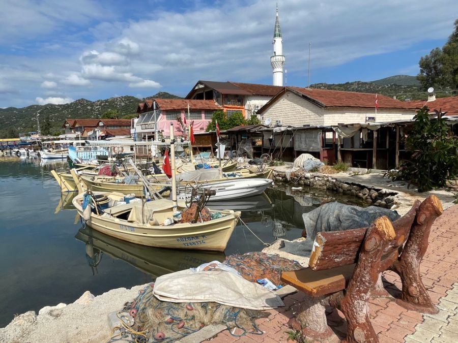 Natürlich kurven wir auch noch ins kleine Dorf Kekova hinunter. Durch die engen Gassen fahren auch die Reisebusse, von denen aber nicht viele Platz haben. Die ersten Bustouristen machen sich auch schon bereit für die gebuchte Bootstour. Aber das meiste ist hier noch im Winterschlaf!