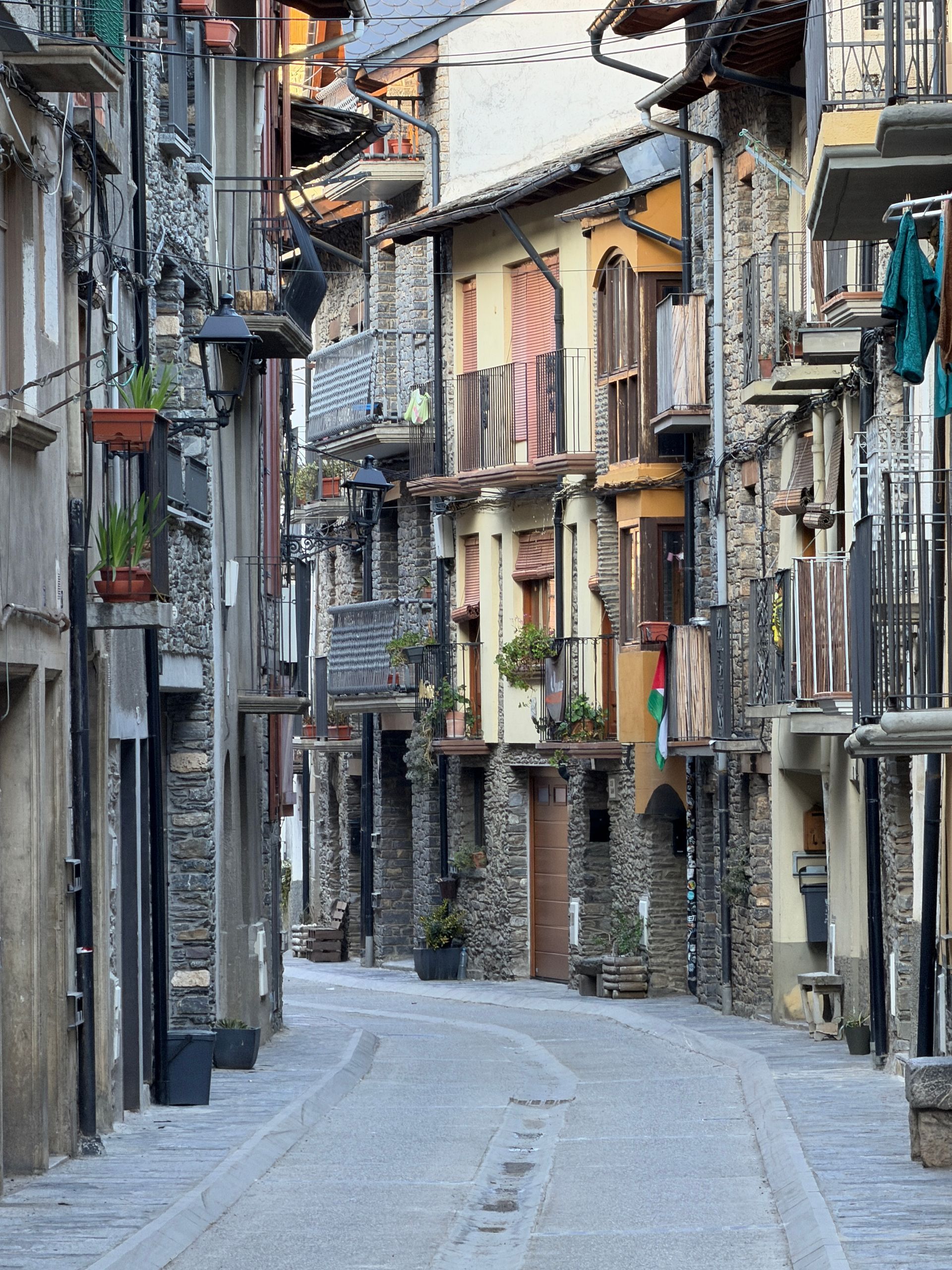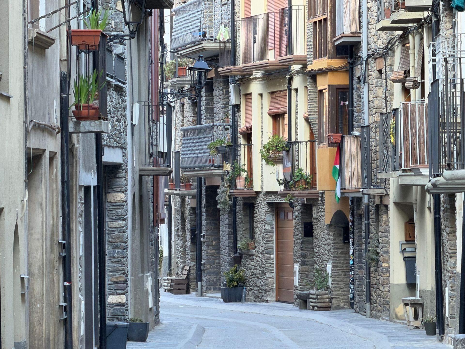 Auf dem Stellplatz bei Ainsa beenden wir die Tagesetappe. Wir schlendern bei herrlichem Sonnenschein durch die kleine mittelalterliche Altstadt.