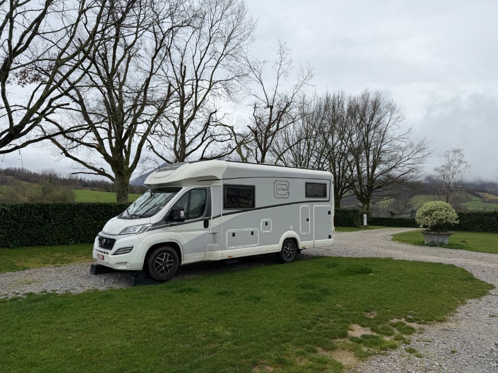 Wir haben uns einmal mehr einen Stellplatz der Kette CampingCarPark ausgesucht und landen zum Schluss des Tages in Buzy, ein kleiner Ort am Rande der Pyrenäen. Der Stellplatz liegt etwas ausserhalb auf einer Anhöhe. Von den 35 Plätzen sind lediglich 6 belegt. Das Wetter versperrt uns jedoch die Aussicht, aber wir freuen uns über die Ruhe und die grosszügigen Platzverhältnissen.