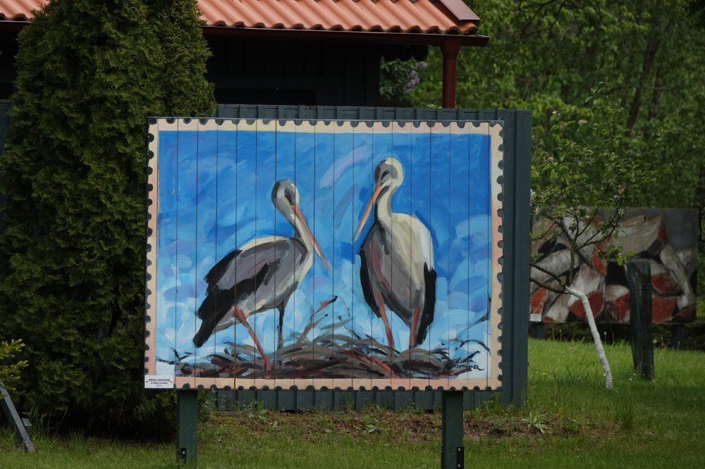 Gegen 10 Uhr starten wir endlich und fahren auf der 141 weiter westwärts. Mal mehr mal weniger der Memel entlang. Auf der Höhe von Biténai stellen wir den Blinker nach links. Dieser Ort hat einiges zu bieten. Eine grosse Storchenkolonie nistet hier in den Bäumen, was eine Seltenheit ist. Störche bevorzugen freistehende Kamine, Dächer, Masten oder ähnliches.