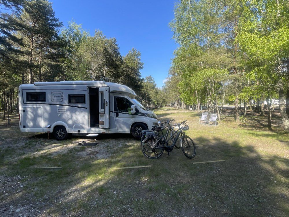 Der Campingplatz liegt in einem Wald und doch können wir nach unserer Rückkehr noch bis nach 18.00 Uhr auf unserem Platz die Sonne geniessen.