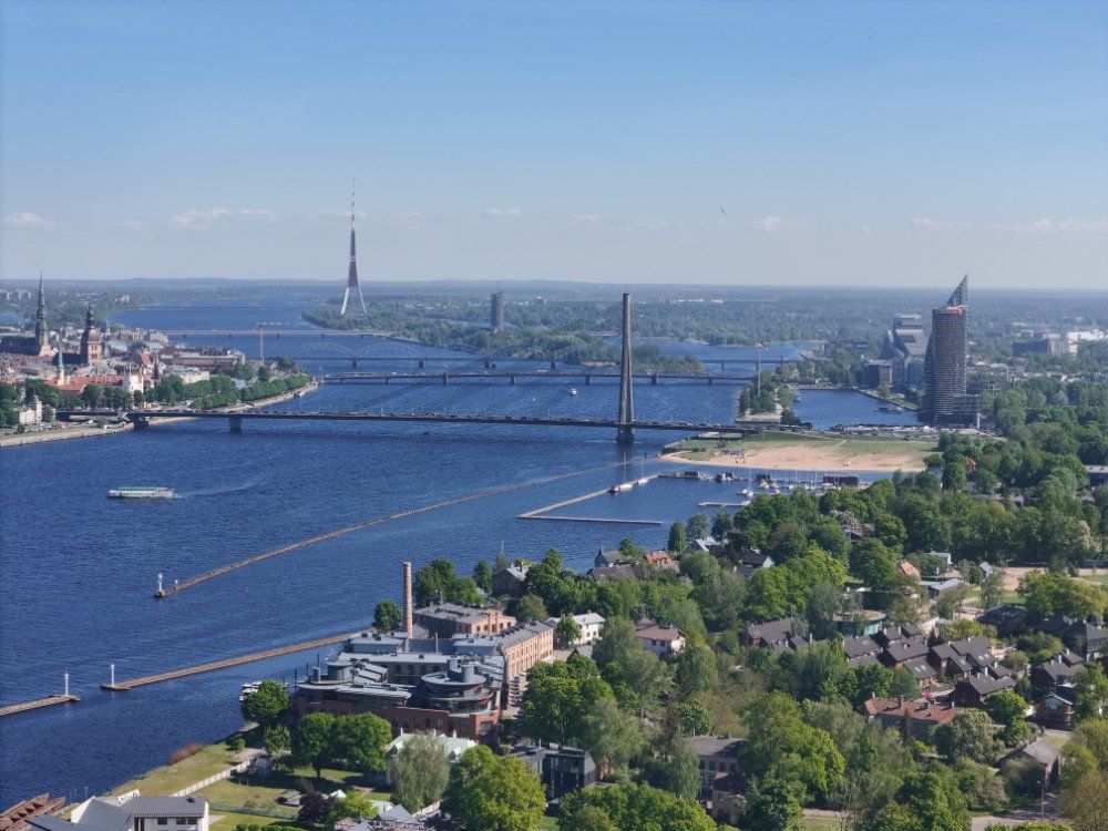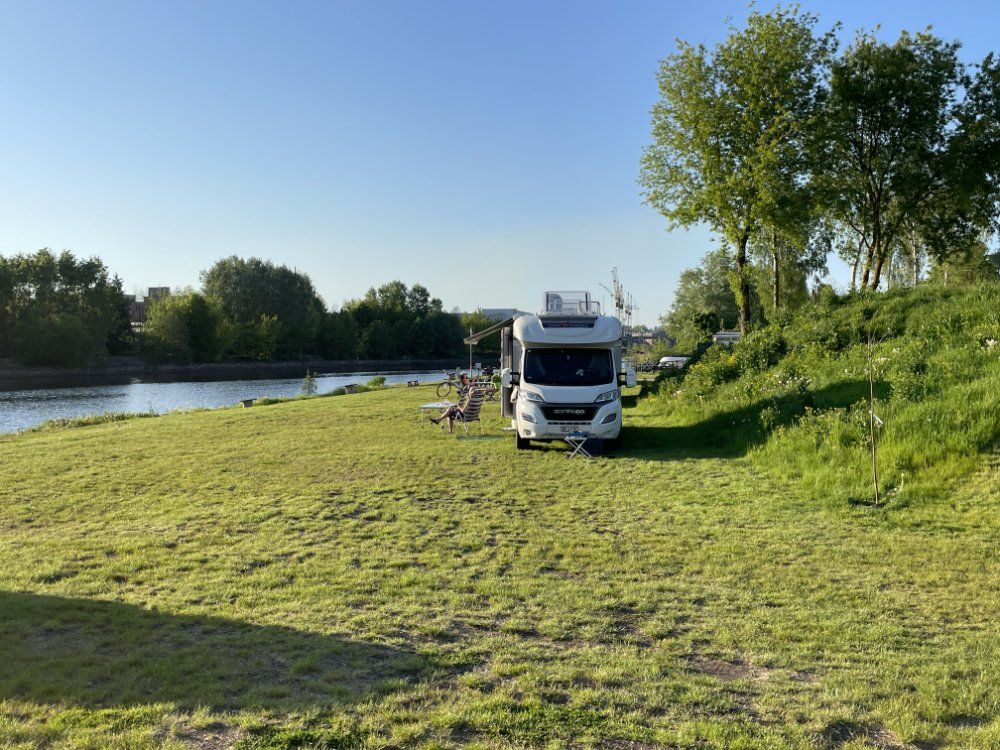 So treffen wir gegen 16.30 Uhr in Riga ein. Drei Übernachtungsplätze stehen hier zur Verfügung. Alle nahe beieinander. Der erste kleine Campingplatz sagt uns gar nicht zu. Er ist fast voll, hinten ein Industriegebäude und vorne eine Strasse, zwar nur eine Sackgasse aber der Fluss ist somit gar nicht zu sehen. Der zweite ist ein Stellplatz in einem Hafengelände. Plätze auf Asphalt, direkt am Fluss mit Sicht auf Riga (Industrie und etwas Altstadt). Ein kleiner Grünstreifen vor dem Auto und hinten Lagerhallen und sonst Allerlei vom Hafen mit Betriebsamkeit.