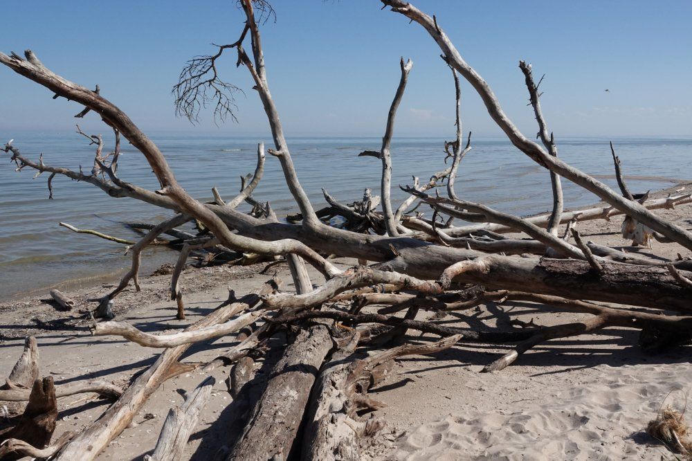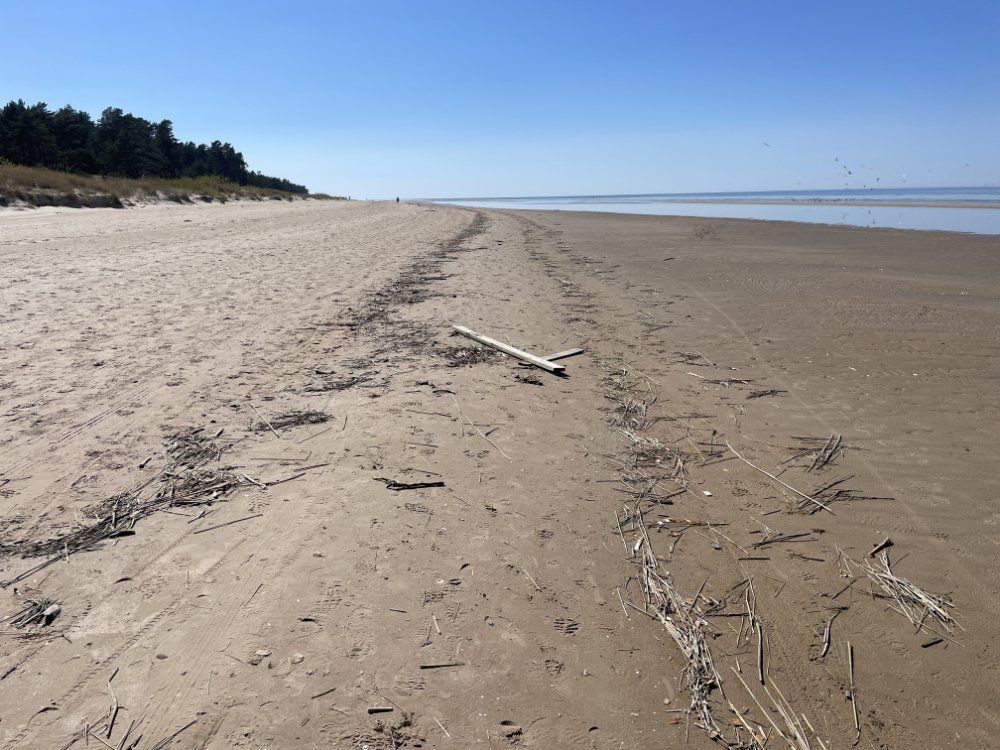 Auf der Westseite der Nehrung liegt der kilometerlange Sandstrand. Man könnte eigentlich dem Meer entlang fast bis zum Fährhafen zurück laufen – immerhin etwa 40 Kilometer.