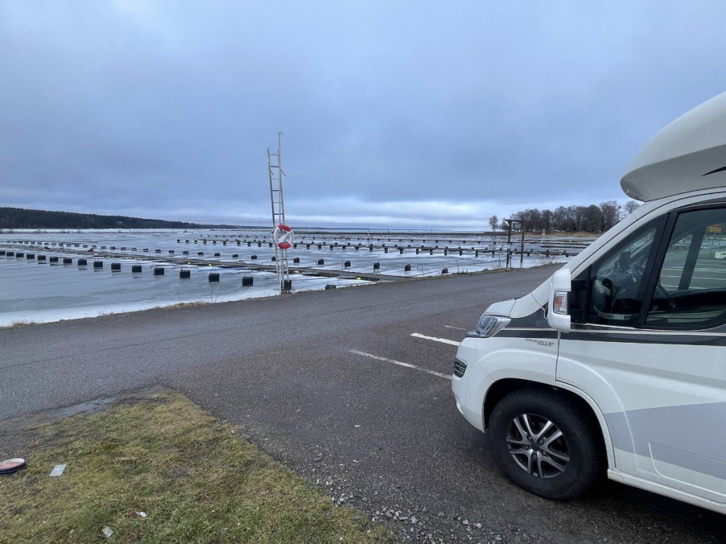 We are also one step closer to winter today. Lake Vänern is even a little frozen on the shore and we even see piles of snow in the city.