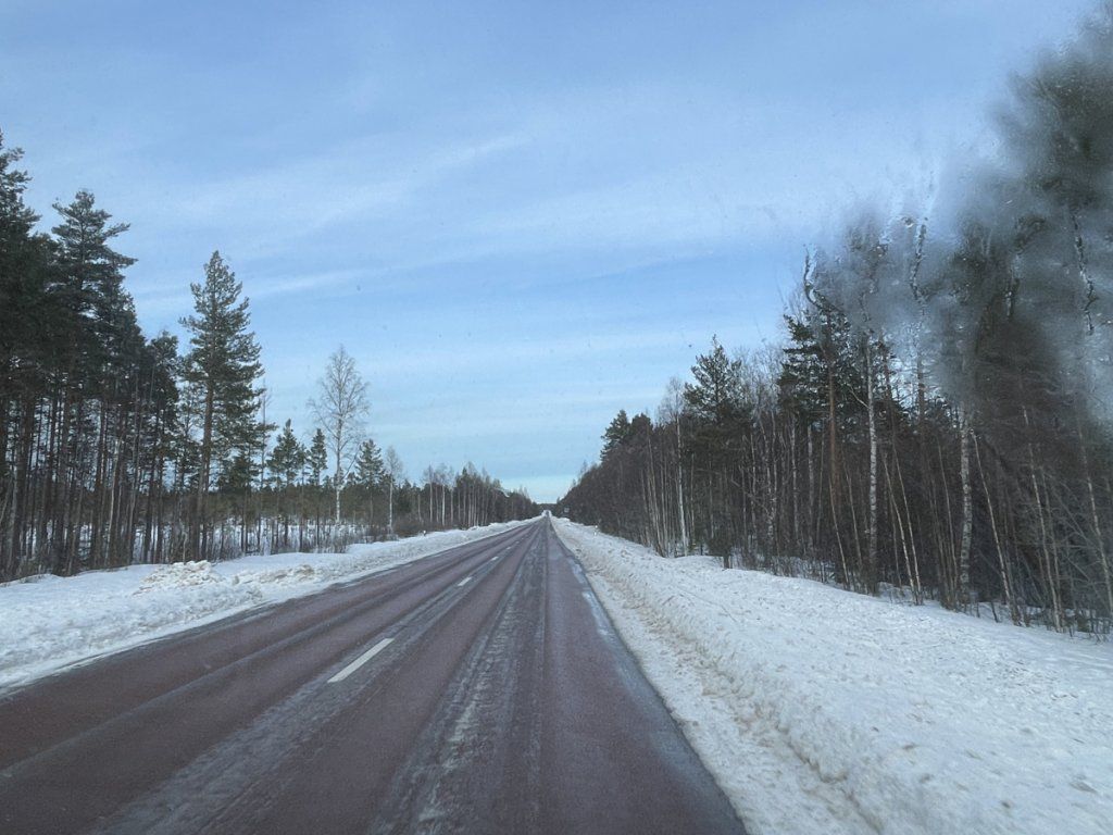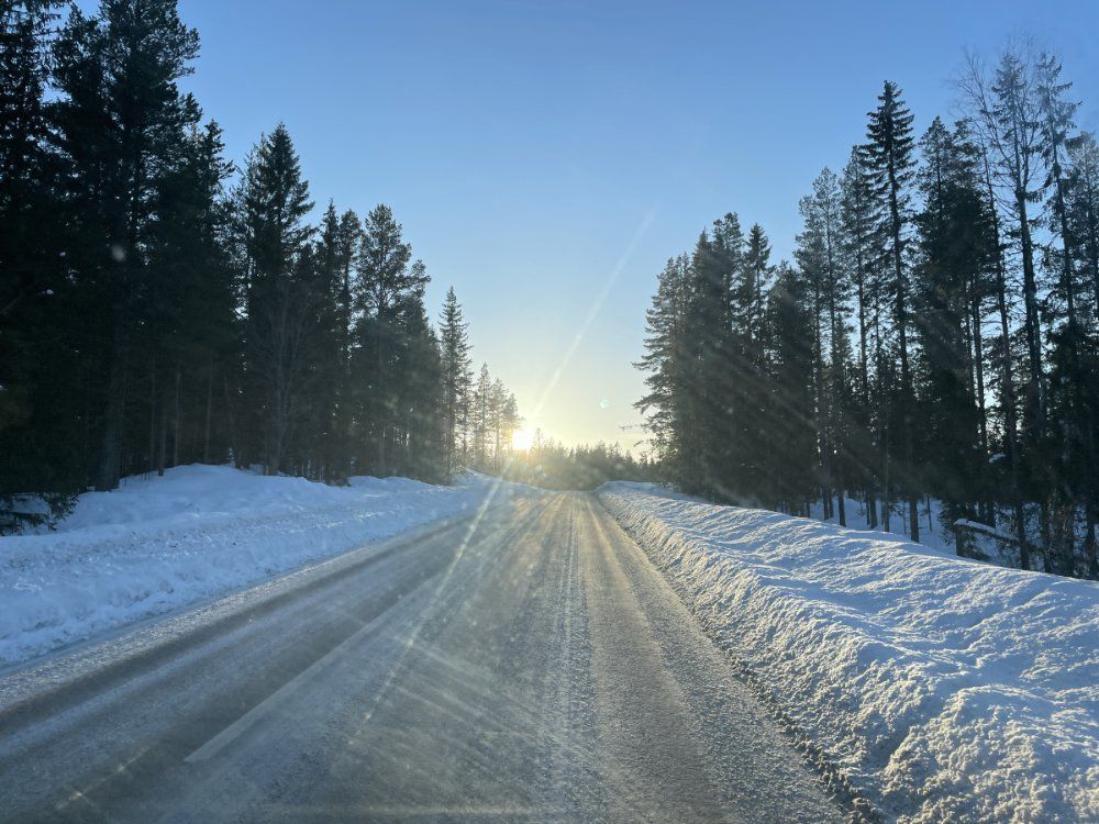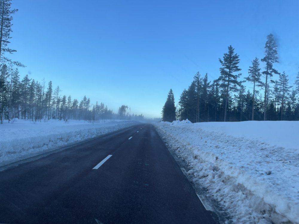 The weather in Mora is almost thawing today. So we chug north again shortly before 12:00 and are actually expecting the road to be free of snow.