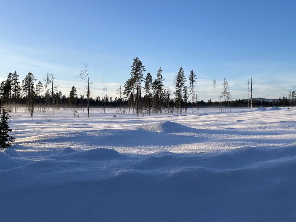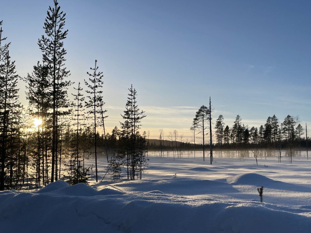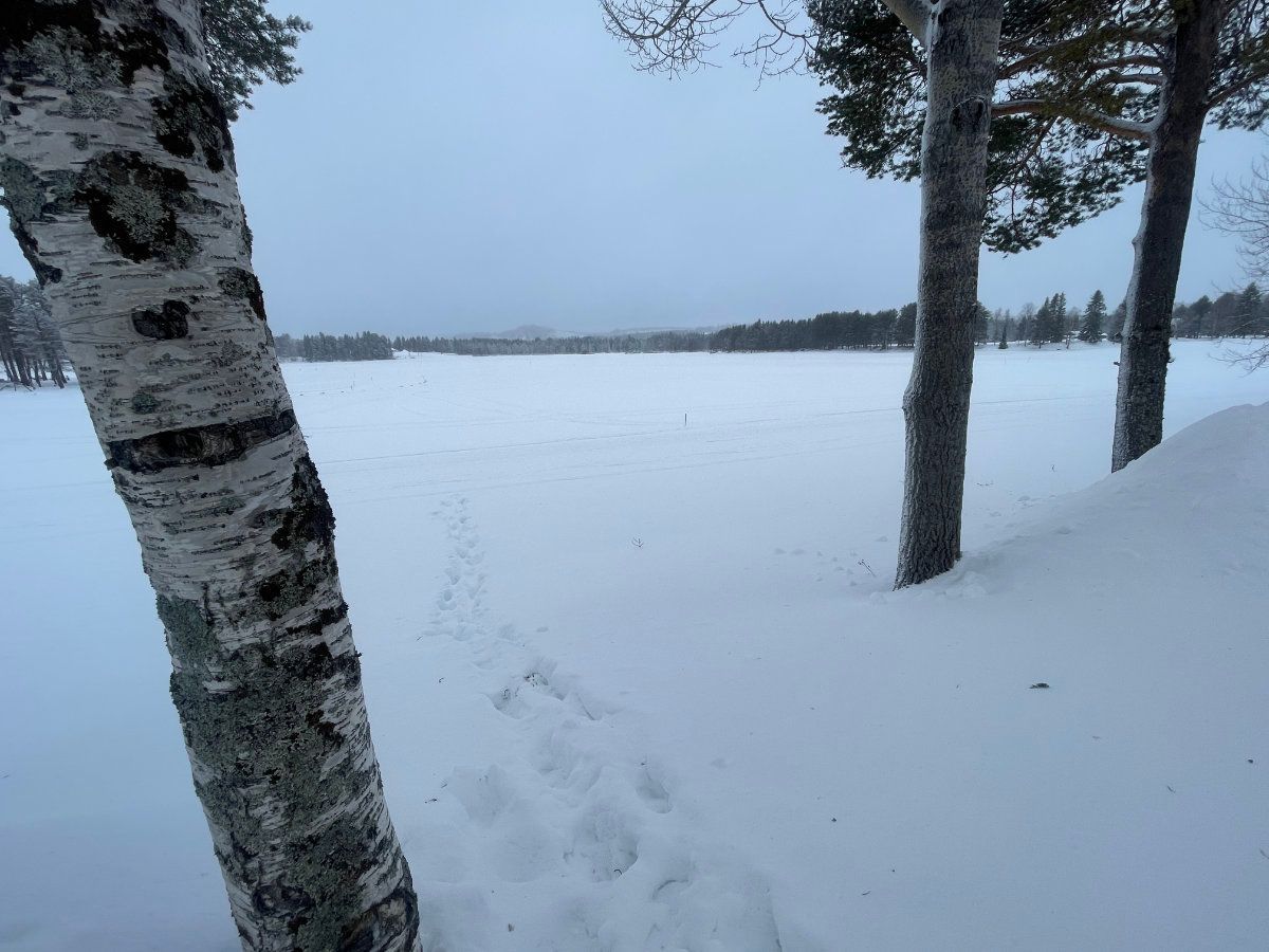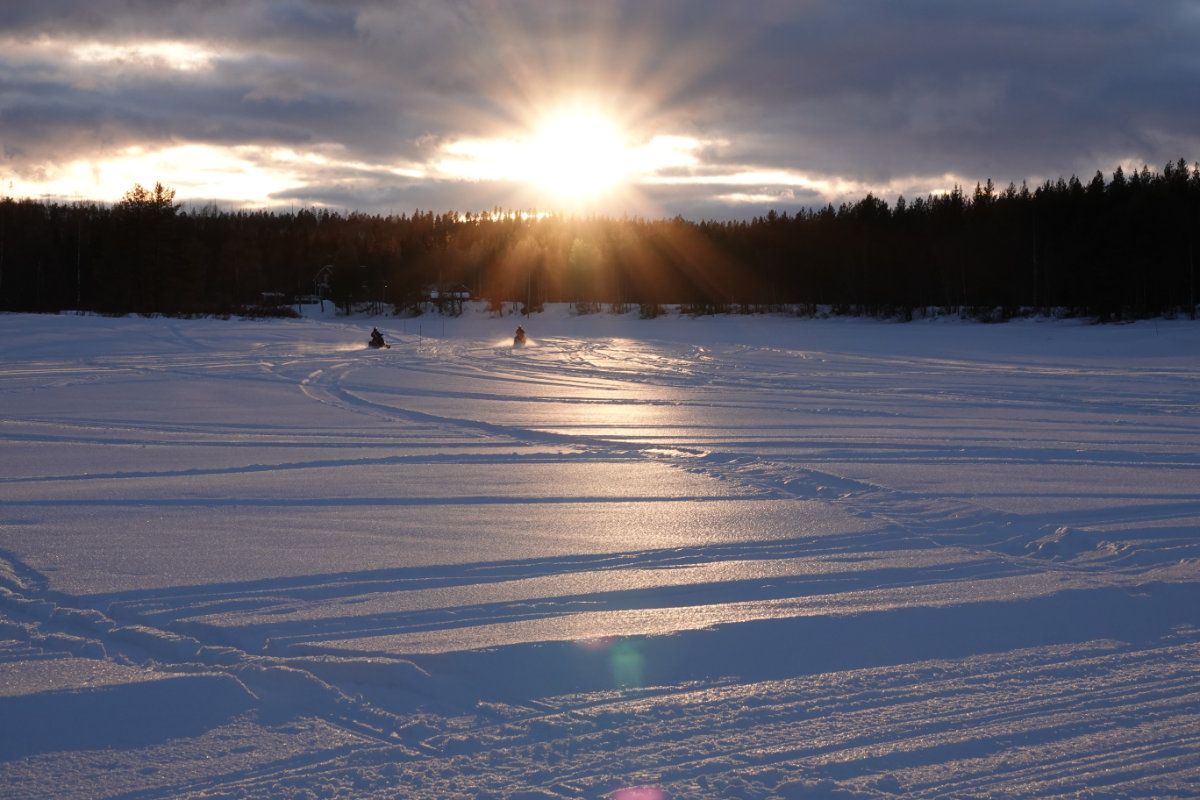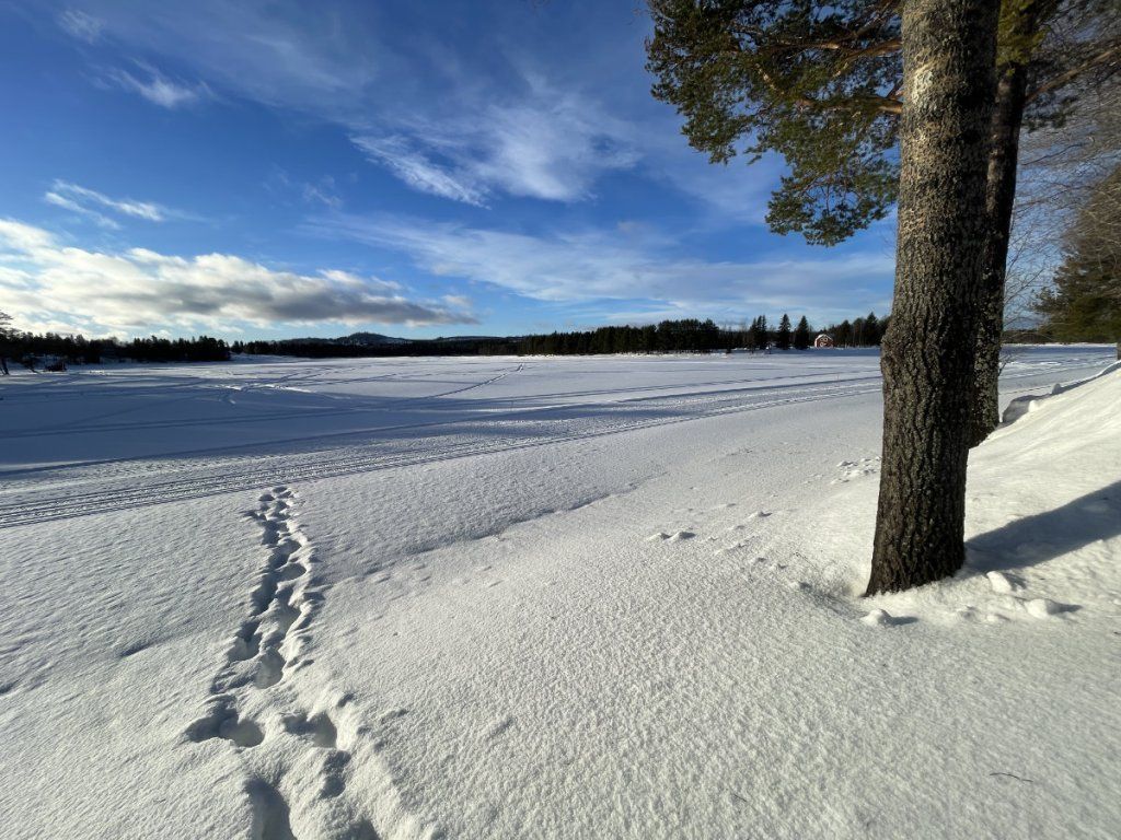 Today everything is white, the lake is frozen and covered in snow and the snowmobiles are thundering across the plain.