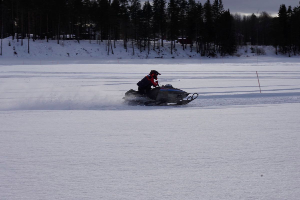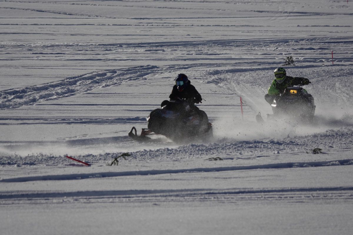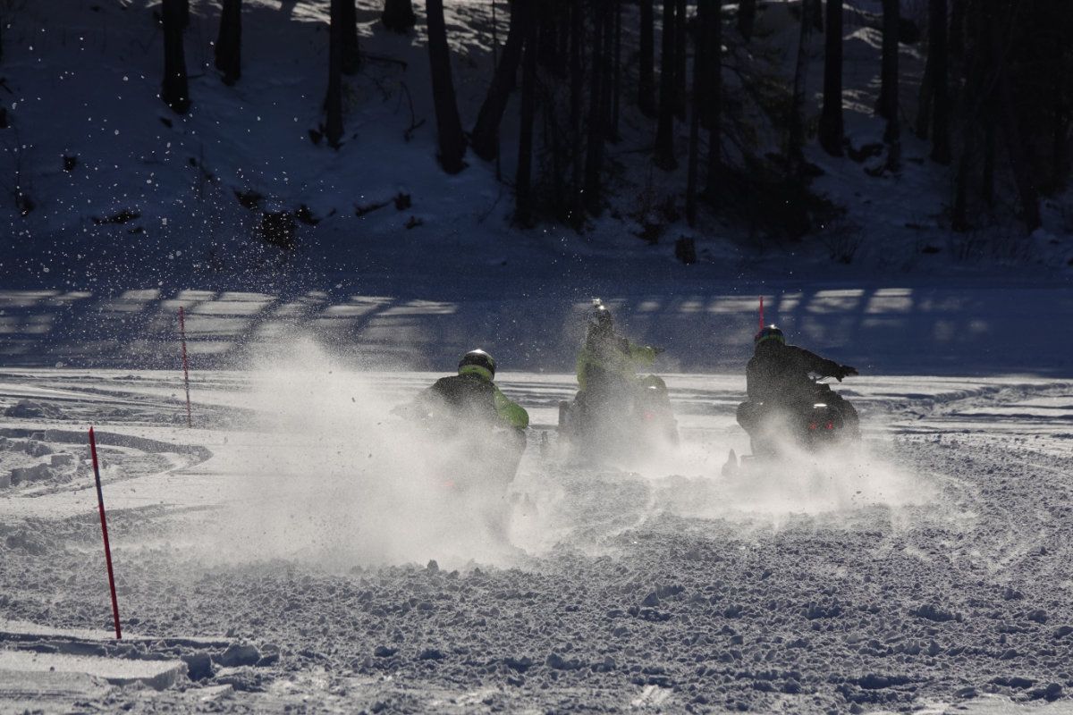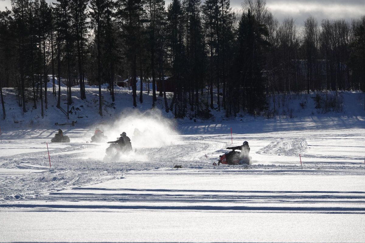 Today there is a snowmobile race on the frozen lake. A spectacle that we don't want to miss.