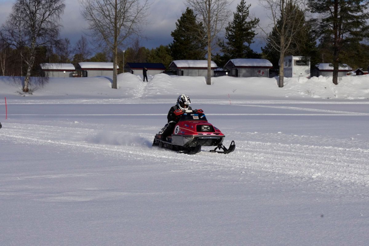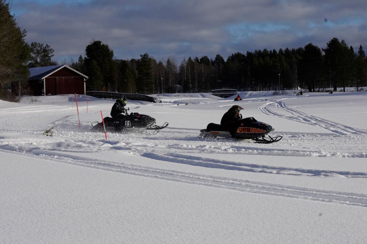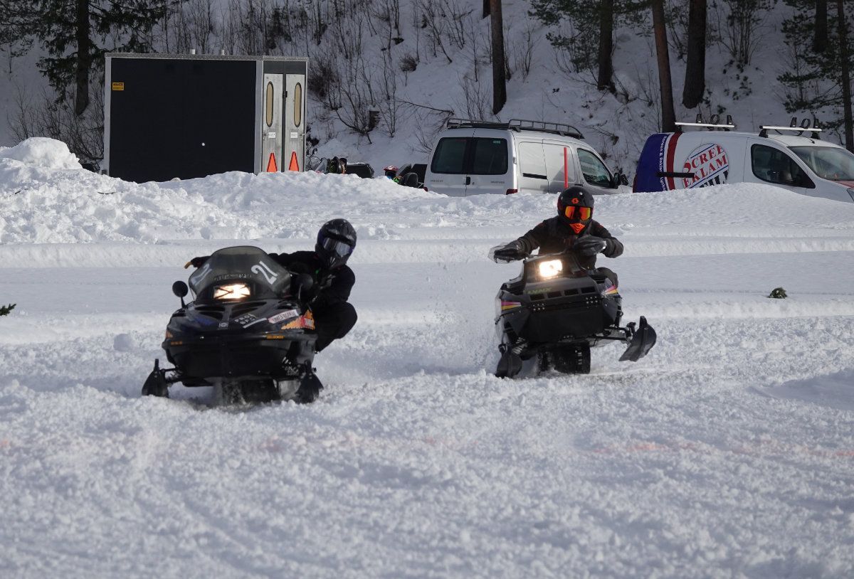 Today there is a snowmobile race on the frozen lake. A spectacle that we don't want to miss.