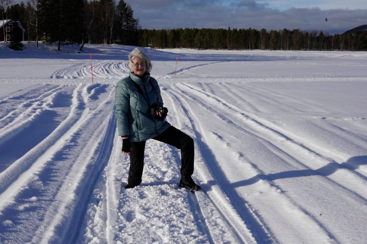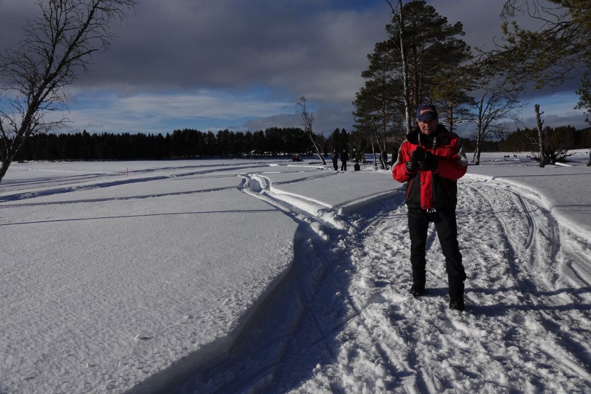 The tracks left by snowmobiles are not always suitable for walking. Suddenly you sink almost knee-deep and we have a lot to laugh about.