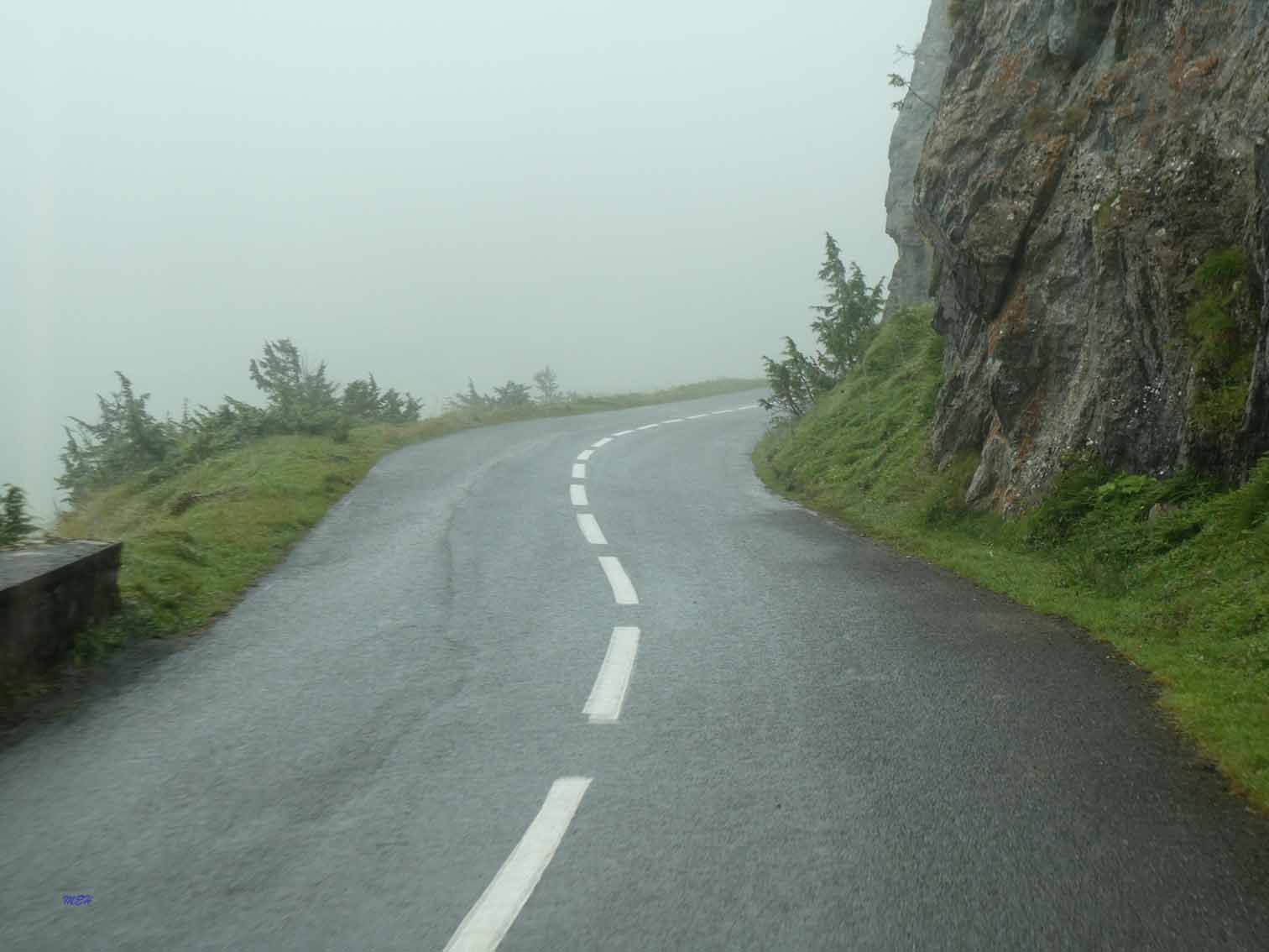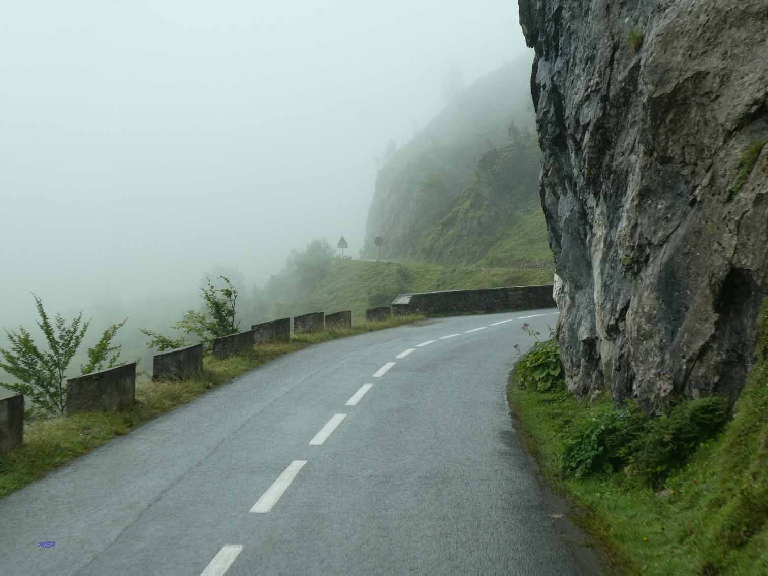 We first drive over the Col d'Aspin and read in the guidebook that the views are supposed to be particularly beautiful. But we can't see anything at all. The drive through the sometimes very thick fog is exhausting. The unlit "bumpers" are particularly dangerous. In Arreau we make the decision - we won't drive any more cols. It's no fun at all in this weather.