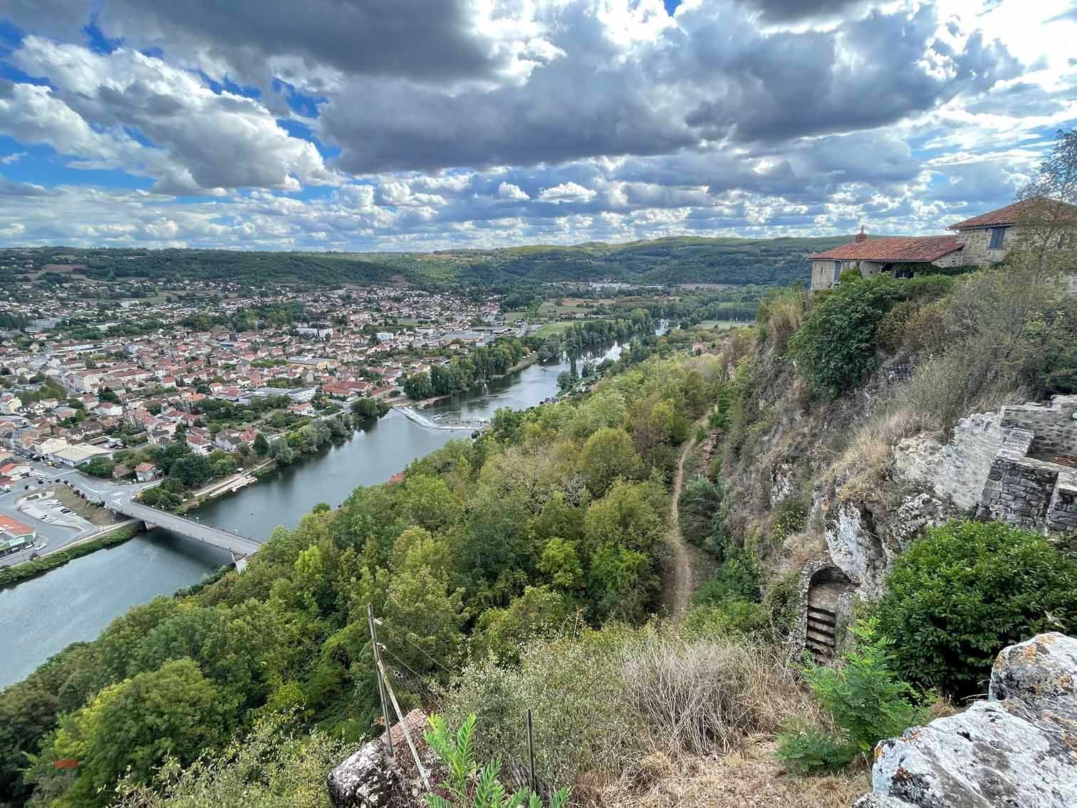 Wir peilen unser nächstes Ziel an - einen Stellplatz in Capdenac-Gare. Jetzt kurz nach 13.00 Uhr haben wir viel Platzauswahl und wir stellen uns ganz vorne direkt an den Fluss. Nach dem kleinen Mittagsimbiss fahren wir mit den E-Bikes hoch nach Capdenac le Haut. Auch dieses kleine Dörfchen wird als eines der schönsten angepriesen.
