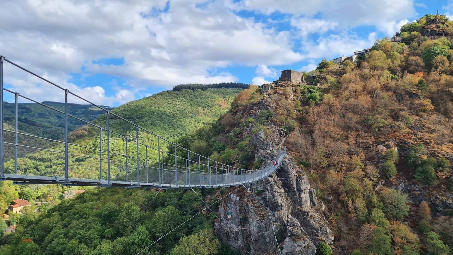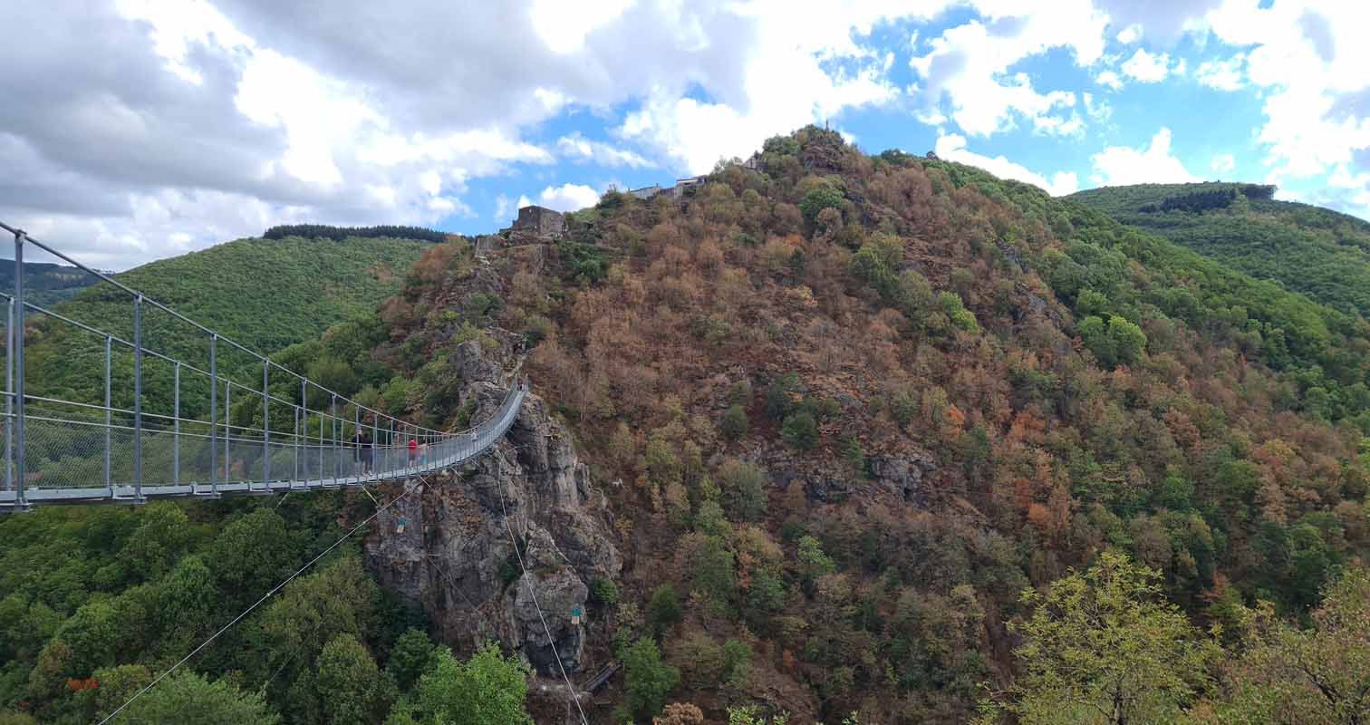 Und ab diesem Platz führt eine Wanderung stetig aufwärts nach Hautpoul, einem munzig kleinen mitteralterlichen Dörfchen. Das Highlight ist jedoch nicht unbedingt das Dörfchen sondern die Hängebrücke die es zu überqueren gilt. So gelangt man nämlich von einer Talseite der Schlucht zur anderen. Dann nochmals ein kurzer Aufstieg und man ist oben in Hautpoul.